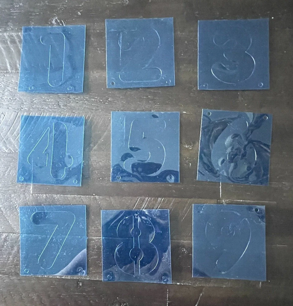 Back to School supplies, Blue Stencils, includes 26 Alphabet Letters, 10 Numbers (0-9) and 24 shapes. Very gently used. I accidentally included the 0 in the Shapes photo but it should be in the Numbers photo. Check out my other items for sale. I will combine shipping. Please contact me with your zip code if you are interested in other items and I can calculate the shipping amount for you. I'm in the process of listing lots of boys, youth, men's and women's clothing, nail sets, games and other miscellaneous items. Please understand that I do not control the cost of shipping or the weight of the item(s) being shipped. If you are combining more than one item, I do adjust what eBay automatically charges for shipping and will refund any extra. Please don't hesitate to contact me with any questions. Thank you very much.