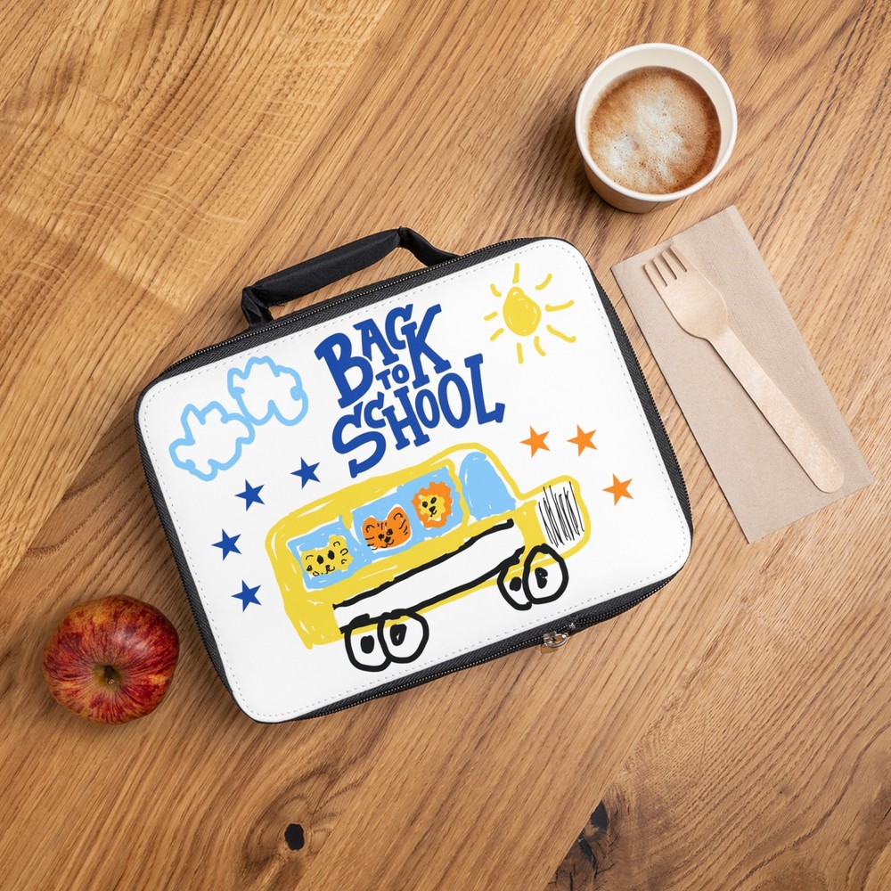 Back to school Lunch Bag Eating healthy should be a piece of cake thanks to this lunch bag for adults and kids. With a zippered closure, a convenient carrying handle, and a durable fabric made with 100% polyester, this lunch bag is made to be enjoyed on a daily basis. .: 100% Polyester .: One size: 9.5″ × 7" x 2.8″ (24 x 18 x 7cm) .: Black base with white customisable area .: Fully lined and insulated .: Blank product made in China