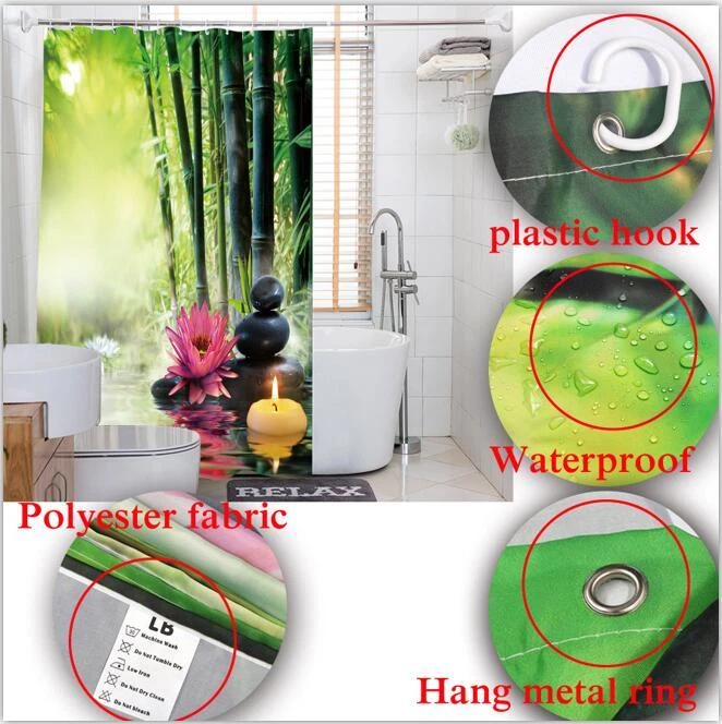 72"/79" 100% Polyester Waterproof Fabric Shower Curtain Liner Hooks Bathroom Mat Set Description: Environmentally friendly, no dye substance harming health of your family. Made of high quality polyester. Mold and mildew resistant, and it won’t breed bacteria. Waterproof and dries fast after you take a shower. Easy to use. Unique design and digitally printed vibrant colors which can add real value and depth to your bathroom decoration. High resolution pictures and photographs brings 3D like realistic experience to your life. No color fading as you use the shower curtain thanks to the new digital printing methods. The cloth will not be easily damaged as a result of machine washing. Machine and hand washable, Do not bleach or drying with a dryer. Shower Curtain Details: Condition:Brand new and high quality. Material: 100% polyester fabric. Size: 72x72inches / 180x180cm (widexhigh) 72x79inches / 180x200cm (widexhigh) Printing: thermal transfer Function: waterproof and mould proof. Cleaning:Machine washable. 12 white plastic C-type hooks Bath Mat Details: Size: 24X16 inches / 60X40cm . Material: Flannel surface and non-slip TPR bottom. Clear and bright color , does not fade . Cleaning: Machine washable. If you buy shower curtain, we will send 12 Plastic Hooks, the hooks are free. If you want metal hooks, you need to buy them, they are not free. Warm Tip: For color difference: Please understand that every computer screen is different, therefore, colors may vary slightly. So slight color difference is acceptable. We will try our best to make it great. Payment We only accept payment through Paypal. Delivery details Shipping:In usual, 7-15 workdays after the item is sent, you can get the item.2-3 days needed to process the order. We try our best to provide you the most reliable, affordable way of shipping service. But sometimes international delivery is highly depended on the local customs and post service. If you do not receive your item on time, please contact us immediately for further assistance. We will be responsible for any damages or losses incurred in the shipping process. Feedback We appreciate your business, if you are satisfied with our service, please leave us a positive feedback and rate the details of the transaction. Contact us Please contact us before Neutral or Negative Feedback,We'll be with you until you are satisfied.Our goals are your 100% satisfaction, your repeat business and your positive feedback.If you have any problem with your purchase,Please let me know immediately and give me a chance to resolve it for your satisfaction.We will reply in 48 hours.