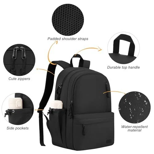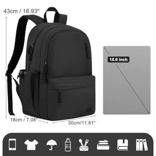 Return Policy Fast Delivery Trusted seller Black Backpack for School, Lightweight Teens Bookbag for Girls Boys Middle School High School,15.6in Laptop Bag for College Student Men Women Product Description ♥【Large Capacity with Lots of Pockets】Roomy space with 3 compartment. Generous main compartments and multiple pockets to keep all of your gear secure and organized;Laptop compartment included 1 padded laptop sleeve and 1 tablet sleeve. Roomy main compartment for organizing work essential, school supplies, travel accessories. Front compartment for quick access small items. ♥【Well Thoughtful Design】Classic bag + popular zipper + convenient top-handle. The heavy duty fabrics are water-repellent, dirt-resistant and easy to care for. Strong padded shoulder strap provides relief when carrying heavier loads. Side pockets for water bottle with elastics. ♥【Safe Travel】Secret pocket on the back for organize value items. Luggage sleeve for lightweight traveling. The anti-theft zipper supports self-installation of the lock. The standard size is airline approved, suitable for under seat. ♥【Dimensions】 Backpack size: 7.48 x 12.99 x 16.92-inch. The perfect size for all your essentials and suitable for cabin. This Teens unisex backpack is functional and convenient with classic style. ♥【Gift Choice】 This lightweight backpack very suitable for students(middle school, high school, college). Great for casual day use and travel. Classic but super cool. Perfect gift for you and your friends. Shipping Returns Payment Shipping Shipping is FREE to all addresses other than APO/PO boxes in the lower 48 states. All our stock ships from US-based warehouses. Shipped via USPS or UPS (depending on location and package weight) Unless stated otherwise, all orders will ship within 24-72 hours of your payment being processed. Check our feedback to see the great reviews of FAST shipping we offer. Returns Seller does not accept returns Payment We currently accept payment via eBay managed payments only. Once payment is cleared, we will dispatch your shipment within 1-3 business days. Please refer to the "Shipping" tab for more information regarding shipping speed to your destination.