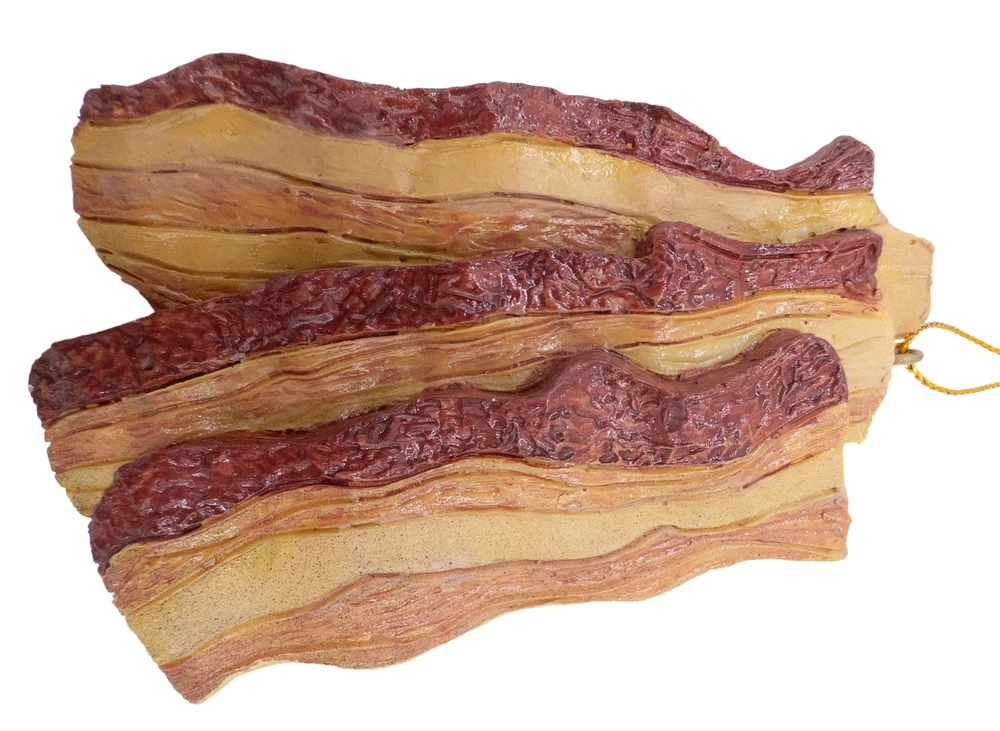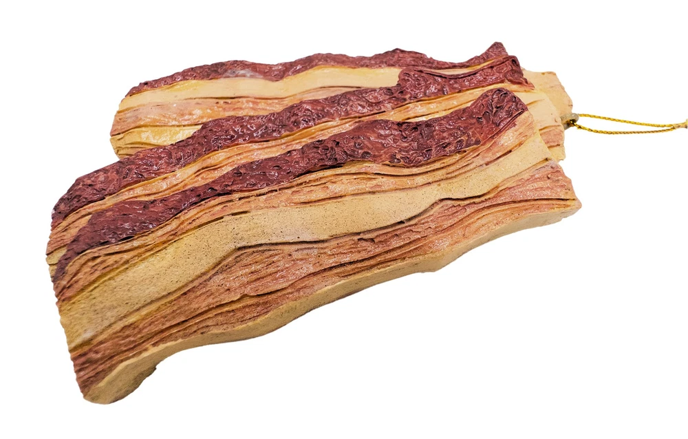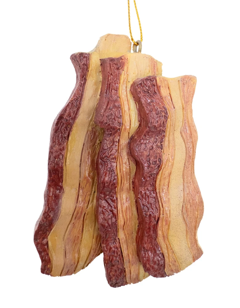 Celebrate the sizzle and aroma of everyone's favorite breakfast delight with our Bacon Christmas Tree Ornament! Crafted with meticulous attention to detail, this charming ornament captures the allure of crispy bacon strips with its realistic design and mouthwatering appearance. Size 4" inches in height by 2 1/2" inches in length. Perfect gift for bacon enthusiasts and food lovers alike, this ornament is sure to spark conversations and bring smiles to the faces of all who behold it. Whether you're decking the halls or simply indulging in some festive fun, our Bacon Christmas Tree Ornament is a deliciously delightful addition to your holiday festivities Realistic appearance captures the essence of everyone's favorite breakfast treat. Hangs easily on Christmas tree branches for instant festive flair. Durable and long-lasting: Made from durable marble resin materials and hand painted, this ornament is designed to withstand the test of time, becoming a cherished part of your holiday décor for years to come. Size 4" inches in height by 2 1/2" inches in length. Spooky Thru Noel curating a diverse collection that seamlessly transitions from eerie Halloween to festive Christmas