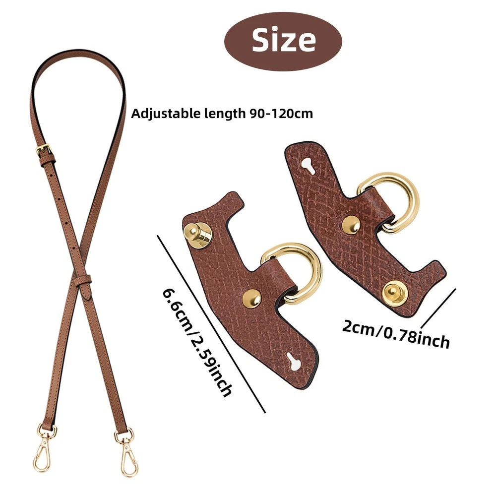 Bag Transformation Accessories mini Bag Straps Punch-free Genuine Leather Shoulder Strap Crossbody Conversion Product Description 1.Brand: 2.Material : first layer cowhide 3.Color : According to your need 4.Size: about 6.4cm*2.7cm ( length*width) 5.Function: Shoulder / Messenger / Handbag Bag Strap Transformation Accessories 6.Package Includes: A pair of leather remodeling buckle Buyer notice: 1. Please note that the package only has leather remodeling buckle(1 pair). If you haven’t bag strap and bag, you should buy them. 2. Bags are for display only, not for sale. 3. Manual measurement, there may be 0.5-1cm error. 4. There is a certain color difference. Due to factors such as light, it may cause color differences, please refer to the physical item. 💖Handbag Modification Accessories: The handbag can be turned into a crossbody or shoulder bag without damaging the purse, and one bag can be used for multiple purposes. 💖Top-layer Cowhide: Strictly selected first-layer cowhide material, the texture is clearly visible, tough, and elastic. 💖High-grade Hardware Fittings: The hardware is manual polishing, four-layer electroplating hardware accessories, ensuring exquisite & durability and not scratching your expensive and beloved bag. 💖 Adjustable Shoulder Strap: The length of the shoulder strap can be adjusted between 95CM-125CM, which fits different heights. 💖Easy to Installation: 1. The raised part of the leather remodeling buckle is aligned with the groove position. 2. Make a circle from the lower net. 3. Fasten the buttons and the installation is complete.