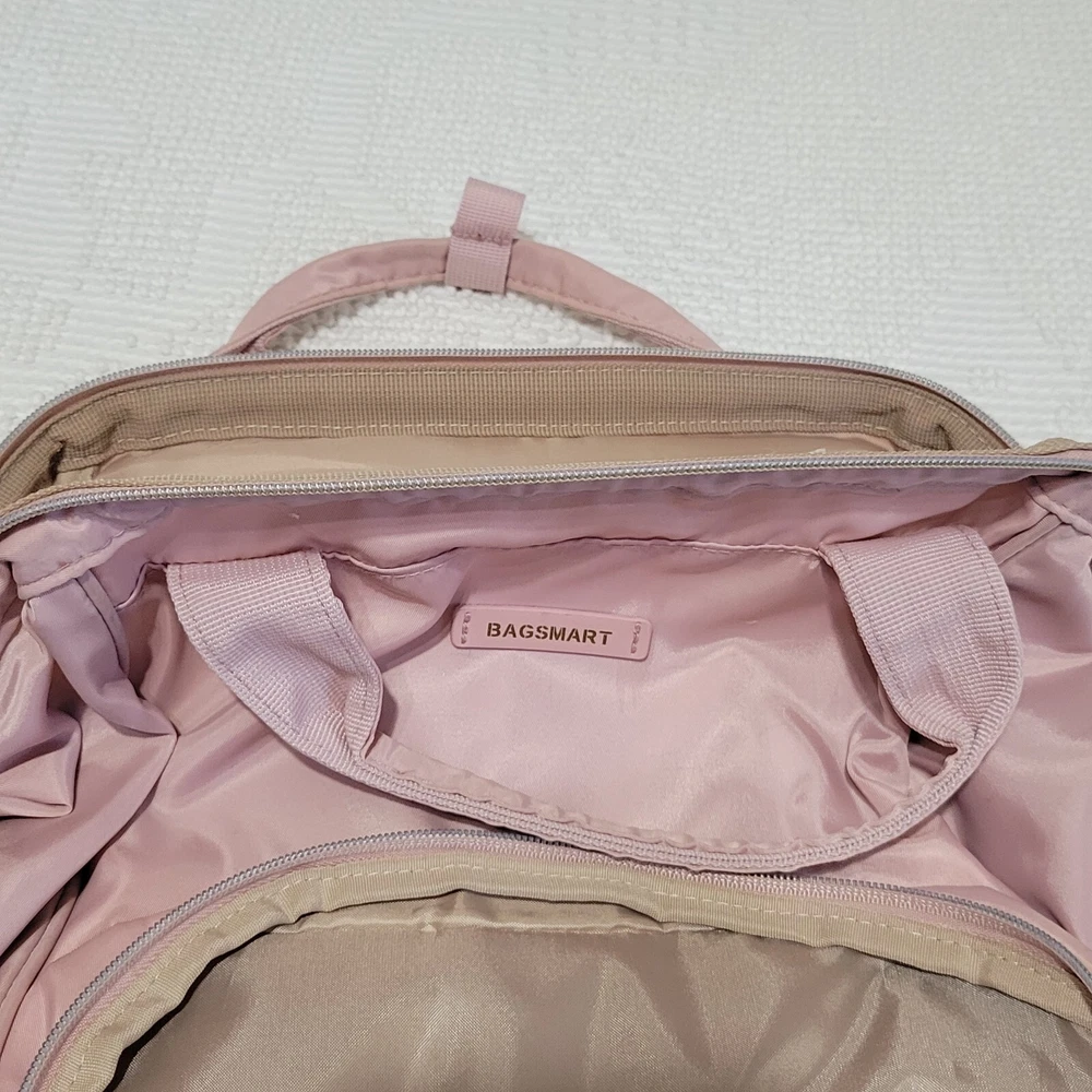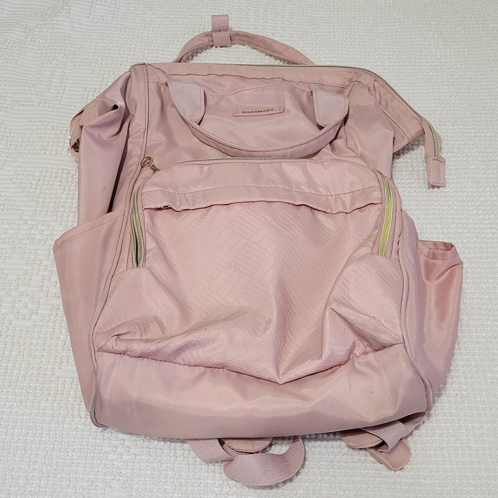 Color: Pink Closure: Zip Lining Material: Fabric Pattern: Solid Brand: Bagsmart Handmade: No Hardware Material: Gold Colored Metal Handle/Strap Material: Polyester Bag Height: 17 Inches Style: Backpack Vintage: No Features: Adjustable Strap, Audio Pocket, Bottle Pocket, Lightweight, Lined, Outer Pockets, Straps Department: Girls Occasion: Casual Bag Depth: 16 Inches Accents: Zipper Bag Width: 14 in Size: Large Handle Style: Top Handle Fabric Type: Blended Fabric Material: Polyester