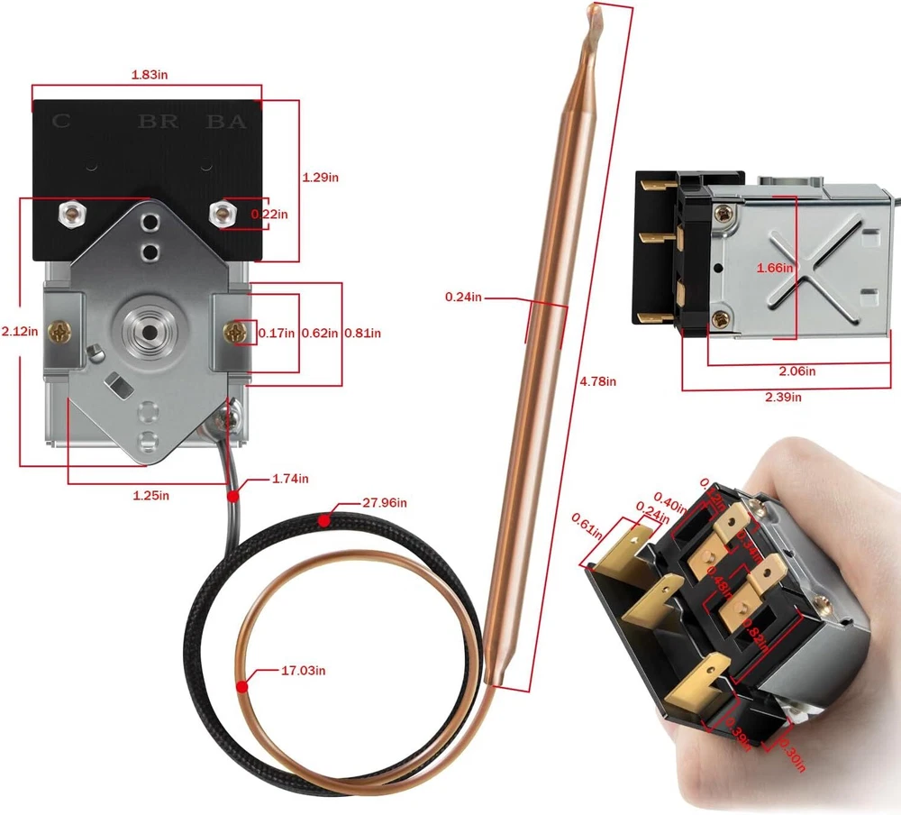 Bake/Broil Thermostat PB010036 for Viking Ranges, Induction, Electric, Gas Ovens PB010036 Thermostat Bake/Broil Part, Replace for Viking Thermostat Fryer Bake Broil Part KKB-9-48, Fits for Awoco, Viking Range Stove Oven (Max Temp 606℉, 22A 120-250 VAC) Wide Compatibility: The PB010036 Bake/Broil Thermostat is used in a wide range of Viking Models — EVGIC365; EVGIC485; SVGIC305DSI; VGIC245; VGIC245G; EVGIC305; VGIC245K; VGIC245Q; VGIC305; VGIC305DSI; VGIC307; VGIC307DSI; VGIC365; VGIC367; VGIC485; VGIC487; VGIS300; VGIS360; VGIS480; VGRC365; VGRC485; VGRC605 (All VGR/VCM/VRT Units); VGSC300; VGSC305; VGSO165; VGSS300; VGSS360; VGSS480. Used on any non DSI ignition system. It is also fit for Awoco and other Range Stove Ovens, ensuring universal. Product Specification: Replacement Part Number: PB010036 / KKB-9-48; Dimensions: 2-7/8” x 1-7/8”; Current: 22A; Voltage: 120-250 VAC; Temperature Range: 100-450℉ (38-232℃); Max Temperature: 606℉ (320℃); 1/4" x 6-3/4" copper bulb with 48" capillary. Please notice that don't bend too much or cut the capillary off the probe bulb, liquid or oil is inside Precise Temperature Control for Baking and Broiling: This thermostat offers precise control of oven temperatures up to 606℉ (320℃), ensuring consistent heat for both baking and broiling operations. It allows you to cook with accuracy, achieving perfect results every time, whether you’re baking delicate pastries or broiling meats. Durable Stainless Steel Construction: Built with high-quality stainless steel, the PB010036 Thermostat Replacement is highly durable and resistant to wear and tear. It is designed to withstand harsh kitchen environments, providing long-lasting performance and reducing the need for frequent replacements. Efficient Performance and Energy Saving: The KKB-9-48 PB010036 thermostat is engineered for efficient performance, helping your oven maintain the desired temperature with minimal energy consumption. This not only improves cooking efficiency but also reduces energy costs, making it an economical option for your kitchen. Easy Installation for Quick Replacement: The KKB-9-48 PB010036 thermostat is designed for simple and quick installation. With its universal fit, it allows users to easily replace the old thermostat without needing too much professional help, saving time and effort. Replace for Viking Thermostat Fryer Bake Broil Part KKB-9-48 fit for Awoco, Viking Range Stove Oven - Max Temp 606℉ , 22A 120-250 VAC PB010036 Thermostat Bake/Broil Part Replace for Viking Thermostat Fryer Bake Broil Part KKB-9-48 The oven thermostat maintains the correct oven temperatures in the bake and broil operations. In bake operation , thermostat contacts close completing the bake circuit through the bake ignitor and bake gas valve to neutral. In broil operation , thermostat contacts close completing the broil circuit through the broil ignitor and broil gas valve to neutral. The thermostat contacts can be checked for continuity by using a continuity tester or an ohmmeter set to the low ohms range. Thermostat Replacement Procedure STEP 01 Shut off power to the unit. STEP 02 Remove all top burner and grill knobs. STEP 03 Remove lower bezel screw from the second burner control from each end of the control panel. (Remove lower bezel screw from grill control on grill models.) STEP 04 Remove two decorative screws at both ends of the control panel to remove the control panel. STEP 05 Remove the two (2) clips securing the thermostat bulb to the inner back wall. STEP 06 Remove the left side grates, burner bowls and grate supports. STEP 07 Carefully pull the capillary tube out of the oven cavity. STEP 08 Remove the thermostat by removing the two (2) screws that mount the thermostat to the control panel. STEP 09 Disconnect the thermostat wiring one lead at a time and connect to the appropriate terminal on the replacement thermostat. STEP 10 Install by reversing the removal steps. Payment Delivery details Terms of sales Returns Contact us Payment 1. All major credit cards are accepted through our secure payment processor Payoneer. 2. Please make sure your Shipping address is correct before you pay, cause it cannot be changed once the order shipped out. Delivery details 1. We only ship to confirmed ebay addresses. Your ebay address MUST MATCH your Shipping address. 2. Please read the shipment and payment detail carefully before you bid. Terms of sales ★If there are any problems with our products, Please feel free to contact us. We will always here to solve them for you. We should try our best to make a happy easy transaction. ★If you are satisfied with our products and our service, please tell your friend and leave us positive feedback. If you are not satisfied with our products or service, please DO tell us. Returns 100% Satisfaction Guarantee: Your satisfaction is our priority. We strive to give our customers excellent service.All our products support 60-Day money-back guarantee, 12-Month warranty for quality-related issues. Simply return it for your warranty. Contact us Any Questions,Just feel free to contact us on eBay.We will reply you in 1-2 business day.