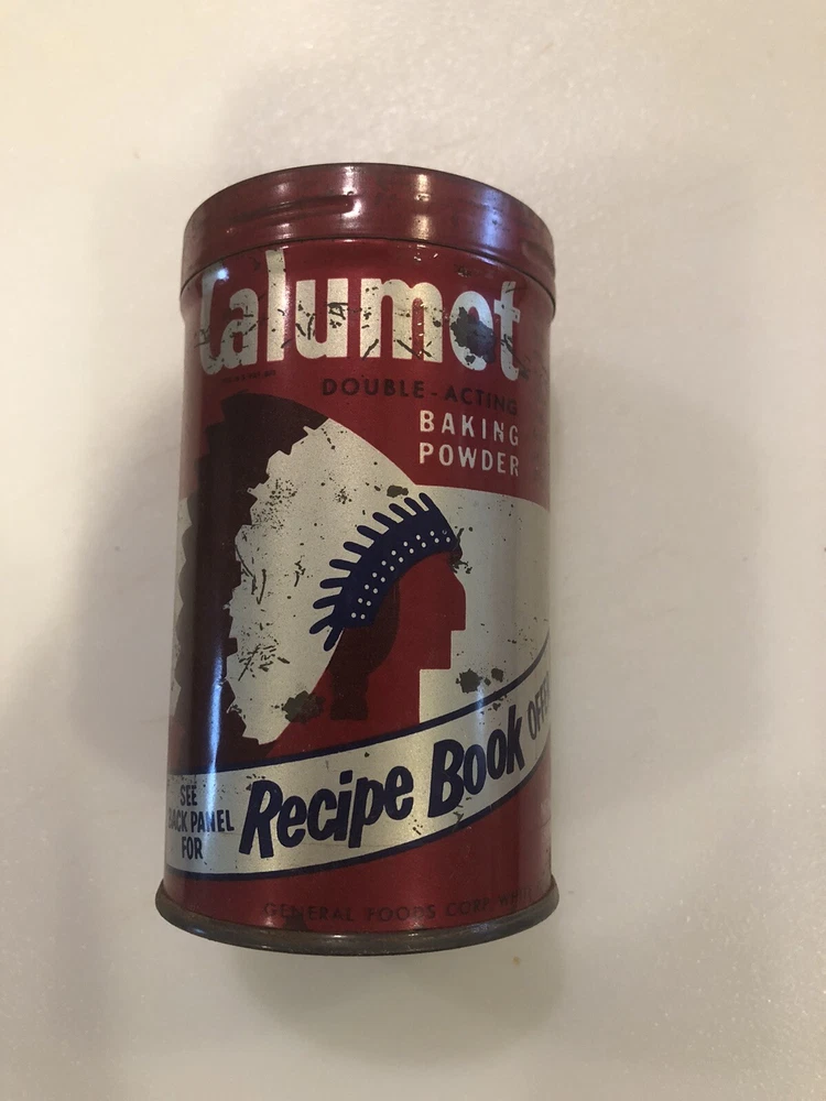 This vintage Calumet Baking Powder Can is a must-have for any collector of advertising memorabilia. The striking red color and lid make it a standout piece that adds a pop of retro charm to any kitchen. Made in the United States in the 1940s, this original tin metal can features the classic Calumet brand and is perfect for storing all kinds of pantry staples. Whether you're a lover of vintage baking items or simply appreciate the unique look of old advertising, this Calumet Baking Powder Can is sure to please. Don't miss out on the chance to add this charming piece to your collection. This is a vintage item Please see the pictures for condition, completeness, and what is included We did not perform any cleaning or restorations and left the item just as found Very nice color and detail Great for collectors and display Thank you for looking