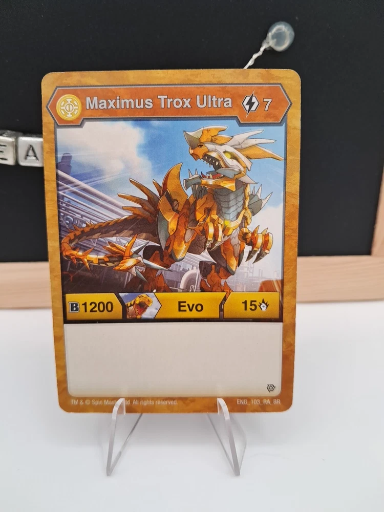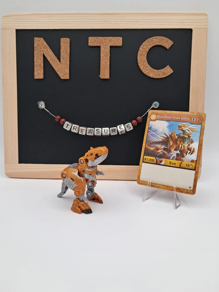 Hey there! Thank you for shopping with us today! This item is in good condition and comes from a smoke free home! We do offer combined shipping, so make sure to take a stroll through our shop before you check out! We ship item next business day, Monday thru Friday, sometimes Saturdays! **We purchase our shipping labels directly through ebay, so please make sure that your shipping address and name are correct on your ebay. Once the label is purchased we cannot change the address.*** This comes from the Bakugan TCG and is perfect for collectors or casual players! This listing includes: - 1 Aurelus Trox Ultra - 1 Maximus Trox Ultra Evo card - 2 Random Cores Please check pictures for condition/signs of wear . Items sold as-is. The item you receive may not be the one picture but it will be of equal quality If you have any questions or concerns please don't hesitate to message! Thank you
