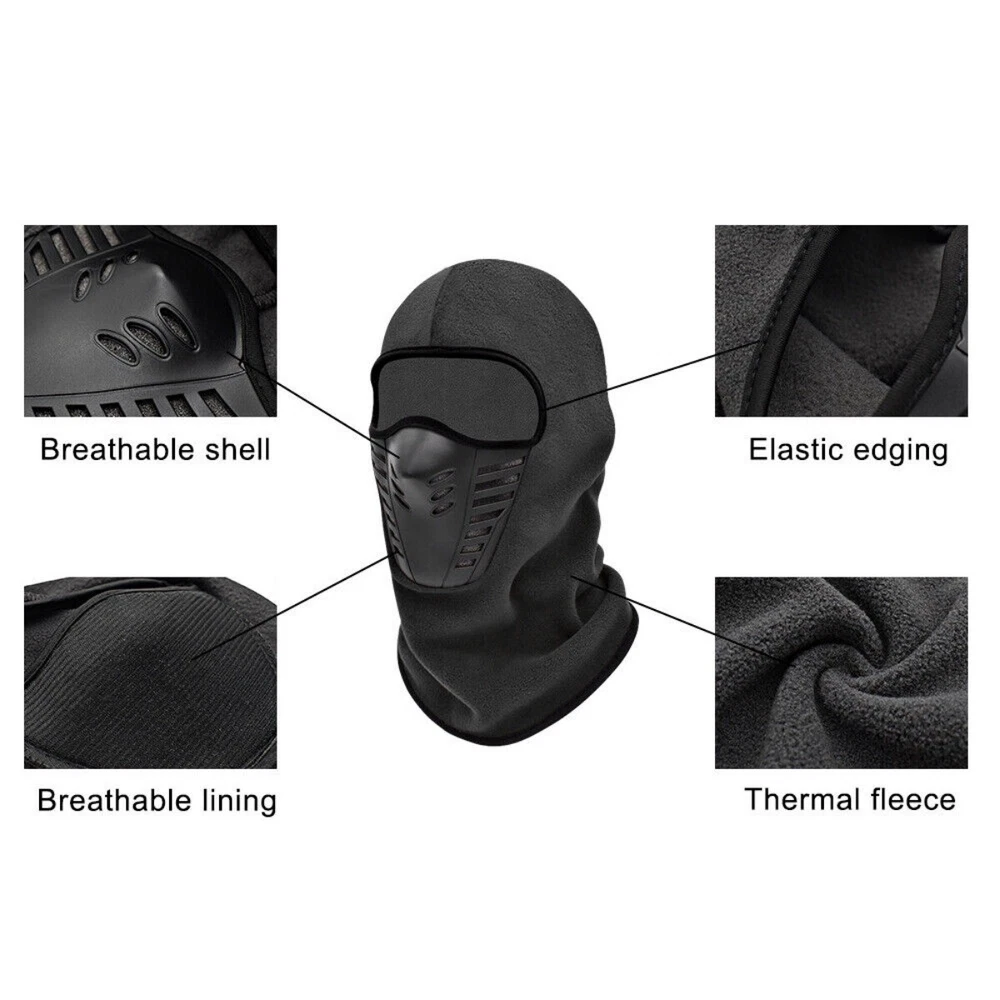 Product Description: Feature: 1. Outdoor sports riding headwear, fleece sunscreen mask, bicycle and motorcycle windproof and dustproof mask headwear. 2. The light and breathable hood is comfortable and breathable, softer and more elastic. Improved 3D structure design, hinge design and breathable mesh vent design, make the balaclava more comfortable, don't worry about it fogging up your ski goggles, the extra support design makes breathing easier to avoid the glasses from coming up fog. 3. It can completely cover all parts of the head and neck, making it closer to the body and more comfortable. Particularly light and easy to carry. 4. It has great elasticity and is suitable for dust and insect protection. Wearing a helmet can better protect the head, ears and mouth. The length can be wrapped around the neck to avoid mosquito bites and dust intrusion. 5. This headgear can cover your face, hide your identity, protect your head, and has many uses. Since CS simulates special environments such as outdoor, sand, sunlight, etc., the head can be well protected. Specifications: 1. Material: Fleece & Polyester 2. Size: 14.17in x 11.8in 3 . Color: Black, Gray, Army Green Package Included: 1x Winter Fleece Balaclava Full Face Mask Notes: 1. Due to the different monitor and light effect, the actual color of the item might be slightly different from the color showed on the pictures. Thank you! 2. Please allow 0.1-2cm measuring deviation due to manual measurem ent.