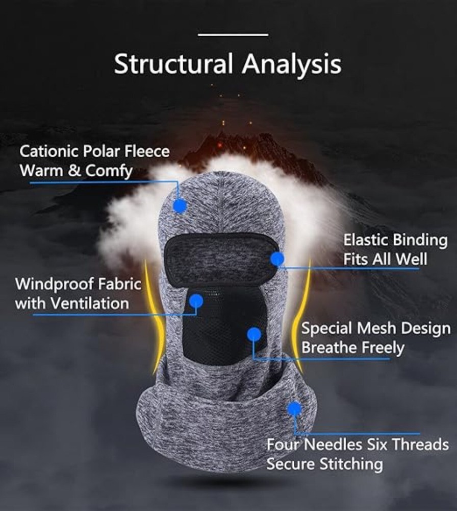 Product Description: Features: 1. Excellent Fabric: We choose superior polyester to make this balaclava. With "four needles six lines" technology, lines sewing craft makes it stronger. This is incredibly warm to protect your face from the cold and breath in the cold air. 2. Innovative Design: Breathable net in front for breathe better, improved cut and different sewing angle for better fit on your head. The net to help prevent your glasses from getting foggy. The head hood is adjustable, can be configured in several ways. 3. Multifunction Ski Mask: You can wear it as a skull full face mask, open balaclava, half ski mask or neck gaiter. Another neat feature is that it can comfortably covers perfectly around your head, nose and mouth without feeling too bulky. 4. Suit for Different Occasions: The balaclava is perfect for skiing, motorcycling, running, mountain climbing, hunting, tactical training, cycling and other activities in cold weather. Perfect design allows you to focus more on the outdoors. 5. Crafted to Fit: This size totally fits most of people. The unique design also allows you to tuck behind your ears for locking in the heat and securing it. It has a long enough lower part to tuck it into your shirt or jacket as well. Package Included: 1x Winter Balaclava Full Face Mask Notice: 1. Please allow 2-3% error due to manual measurement. 2. The colors may have different as the difference display, please understand. Contact US: Your satisfaction is our highest priority. Please contact us if you have any questions or requests about our products or service. We are always glad to assist you and stand by our products.