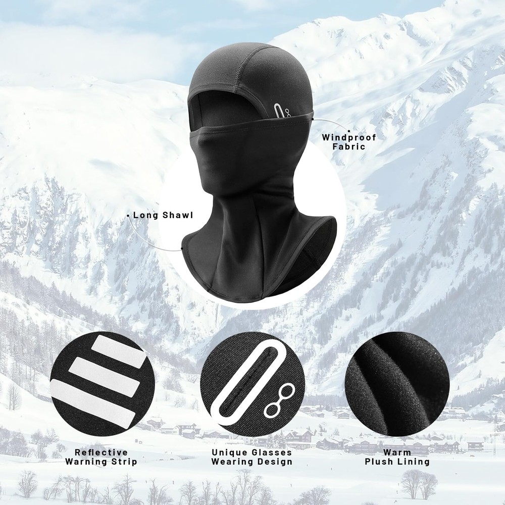 Full Protection - balaclava face mask is made of high-quality nylon fabric, comfortable, lightweight, breathable and durable. Protects your head, face and neck from wind, UV rays, dust and cold. Keep warm but breathable - The ski mask with advanced thermal fleece is soft, warm and breathable, providing comfort breath and pleasantly warmth for you when doing outdoor activities. And it comes well down onto your shoulders ensuring no air gaps. Protect you well even under 32°F(0 ℃). Versatility - Our winter face mask offers multi-use, could be used as a balaclava, pirate hat, shiesty mask, full or half face mask, and neck Gaiter. And it fits most helmet perfectly, is widely used in skiing, skating, snowboarding, motorcycling, ice fishing, riding, hunting, construction work and warehouse duties. Humanized Design - The head masks designed with glasses hole that fits with the most sunglasses and goggles easily. Reflective warning strips in back make riding safer at night. And our design allows mouth & nose to be readily covered, uncovered. Universal Size - Balaclava scarf mask hood used high-elastic materials to fit various head, snug but not tight, suitable for both men, and women. Best gift for your families.