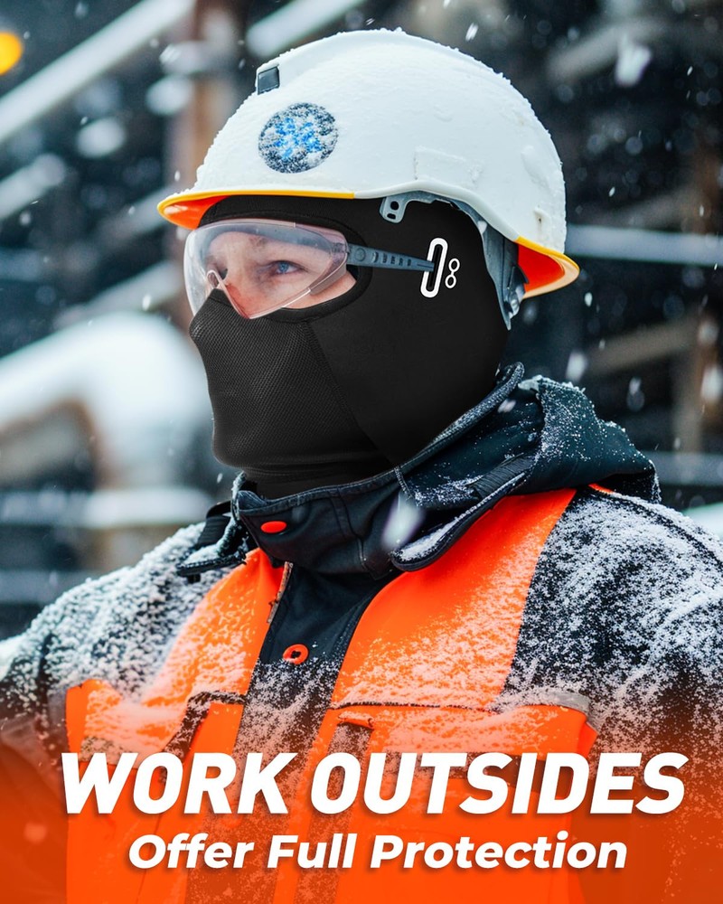 【THERMAL FLEECE FABRIC】: Are you still worried about frozen face or ears when outdoors in cold winter? Our balaclava ski mask will offer a full protection for your head, face and neck, keep you warm and comfortable to wear. It is made of high quality Fleece fabric which is soft, breathable, extra-stretchy. Windproof and suitable for about 20°F. 【UNIQUE GLASSES HOLE DESIGN】: Different from others, this full winter face mask is designed with glasses holes, which makes it suitable not only for those who need wear glasses, but also for those who wear other eye accessories or devices. The glasses holes allow wear glasses more convenient and stable. 【BREATHABLE NOSE MESH】: The mouth part and nose part also designed with breathable mesh. Aim to let you breathe freely even doing outdoor activities or wearing for long time. The fabric has excellent breathability and evaporates the cold air that forms on the head. 【MULTIFUNCTIONAL BALACLAVA】: The face cover shield for cold weather will meet your need when you are in skiing, snowboarding, outdoor working, motorcycle, cycling, running, jogging, sledding, hiking, ice fishing or other outdoor sports. The suitable thickness also provides great under helmet comfort. Provide the ultimate warmth protection in winter. 【UNIVERSAL SIZE】: Excellent elasticity and one size fits most no matter you are men, women or teens. Size is : 16.92 * 12.99 in(L*W). Head size is about 21.65-25.59 in. Hand wash is more recommended and in this way can extend its using time.