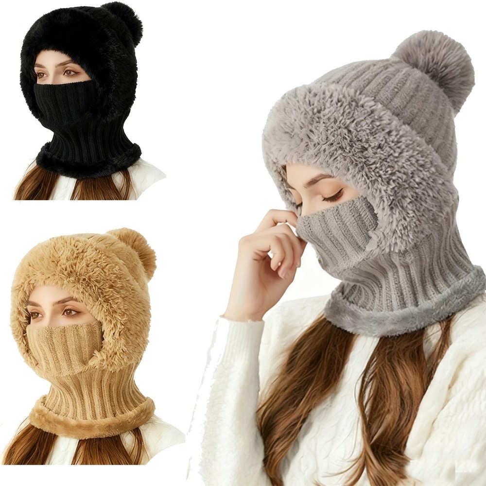 1. 3-in-1 Multi-Functional Design, A One-Stop Solution for Winter Warmth Combines a knit hat, scarf, and face mask in one piece—no need for additional scarves or masks. It covers the head, neck, and face all at once, providing complete protection against cold winds and low temperatures in one go. It saves storage space during outings, making daily commutes and outdoor trips more convenient. 2. Thickened Fleece Lining + Ear Flaps, Effectively Locks in Warmth & Resists Cold Equipped with a high-density fleece lining and widened ear flaps, it creates a double barrier against cold air. Even in temperatures below -10℃, it keeps the head, ears, and neck warm, completely eliminating the trouble of "frozen ears" and "cold neck". The fleece material is soft and skin-friendly, with no itchy sensation even after long hours of wear. 3. High-Quality Knit Fabric, Durable, Wear-Resistant & Skin-Friendly Made of anti-pilling knit fabric with a fine texture and good breathability. It maintains a neat shape and retains its warmth even after multiple washes, without losing its effectiveness. The fabric is skin-friendly, non-stuffy, and sweat-resistant, ensuring comfort whether worn daily or for extended periods outdoors. 4. Ergonomic Fit Cutting, Unisex & Fits Most Head Sizes Features an ergonomic design that fits most head circumferences (approximately 54-60cm), suitable for both men and women. It offers a comfortable fit with no tightness or looseness. The face mask part can be flexibly adjusted to control coverage—it does not block vision or affect breathing, balancing warmth and practicality perfectly. 5. Multi-Scenario Adaptation, Blends Winter Fashion & Practicality Provides comprehensive protection for scenarios like daily commutes, snow walks, and outdoor cycling. Its simple knit style seamlessly matches various winter clothing such as down jackets and coats. It is not only a must-have warm item for winter but also a fashion accessory that enhances the texture of your outfit—ideal for both gifting and personal use.
