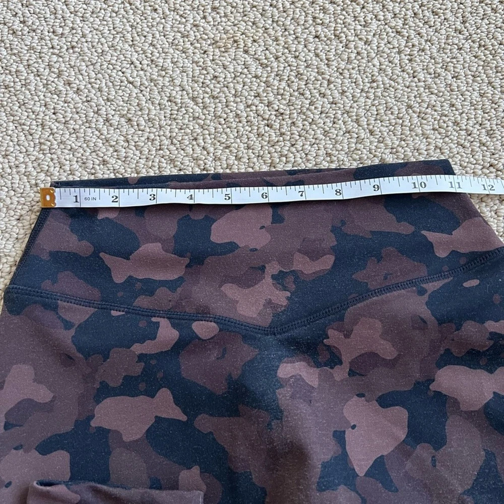 Balance Athletics leggings! Size small- the hang tag is cut out, but see approx measurements in pics Brown/black camp print In good pre owned condition- no tears or stains. Just some general wear, and 2 small snags, see close up in last pic Please reach out with questions!
