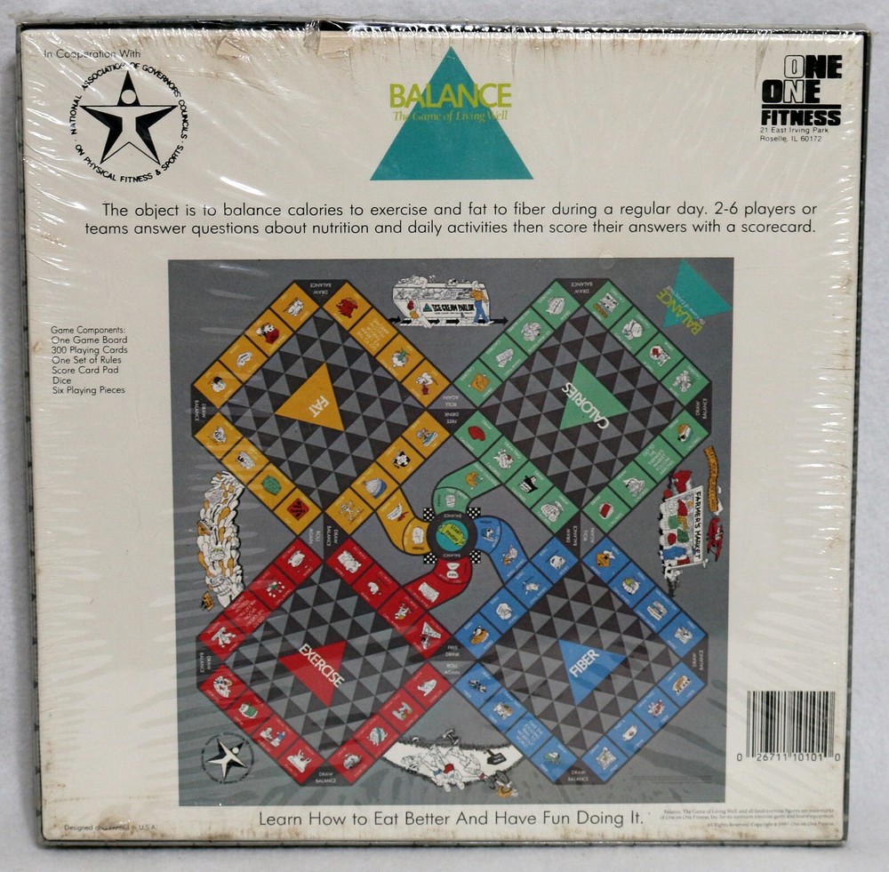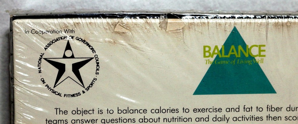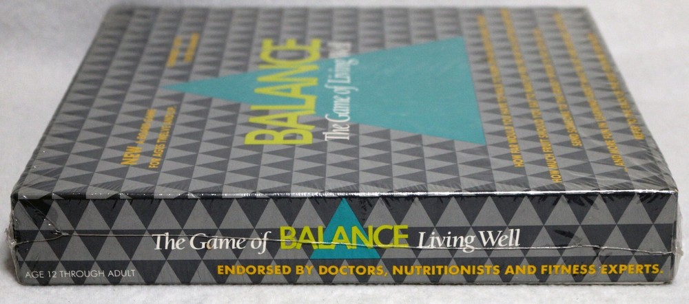 This rare and vintage game titled "Balance The Game of Living Well" is a must-have for any game enthusiast. Sealed in its original packaging from 1987, this complete game is perfect for 2 or more players who enjoy strategy games. It is based on real information and is in cooperation with the National Association of Governors' Councils on Physical Fitness & Sports. You will definitely learn valuable things playing this game. The game is designed for players aged 12 and above, with a theme that will keep players engaged for hours. The game includes components such as a game board, playing pieces, cards, and instructions. Get your hands on this rare gem and enjoy the thrill of living well through strategic gameplay. While the game is still new, in its original packaging, unopened, the cellophane shows wear. Please see the pictures. Each item we ship is carefully packaged to prevent any damage and is shipped immediately with tracking.