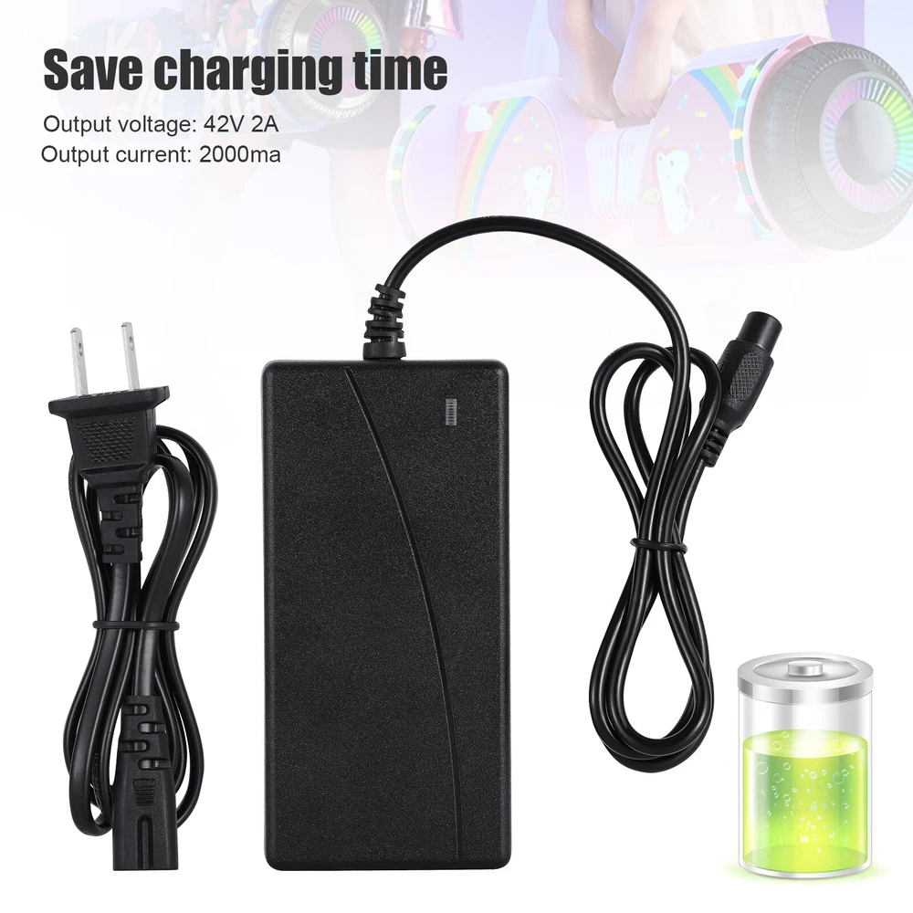 Balancing Scooter Hoverboard Adapter Charger Power Supply 42 Volt 2AMP PASS-CC Feature Made of environmentally friendly material,safe and anti-interference,durable to use. Smart charger: Multiple protections to ensure safety, specially designed to maximize the performance and lifespan of your battery. 8mm 3 prong Plug. For 36V Lithium battery. Easy to use: Charge dead battery. Just plug in and forget, It will maintain and fast charge your battery automatically. Smart LED Indicator: RED light means charging. Light turns GREEN from RED means battery full charged. Specification Input voltage range: AC100-240V Input Frequency: 50-60Hz Output voltage: 42V 2A Output Current: 2000ma Color: Black Compatible With All Hoverboard Balancing Scooter Suitable for balance bikes and scooters with Round Three-hole Ports Package 1 X AC Charger Adapter 1 x Power Cord Payment Delivery details Terms of sales Feedback Contact us Payment We accept payment by PayPal only. Delivery details 1. BUSINESS DAY MONDAY- FRIDAY FAST SHIPPING FROM USA. 2. All orders and payments received before 4PM EST (1PM PST) will be shipped the same business day. 3. No shipping on Saturday,Sunday or USA Public Holidays 4. No responsibility for any custom duty Terms of sales 1. We offer a 60 day money back guarantee or exchange. 2. Buyer pays return shipping and we pay replacement shipping. 3. If you want to initiate a return,please contact us to get a returning address before sending the item back. Feedback 1. We strive to provide the best products and services. 2. Your positive feedback 5 stars DSR help us do better. 3. If anything about your transaction did not meet expectations, please CONTACT US and give us the opportunity to make things right. We are always here to help. Contact us Please do not hesitate to CONTACT US . You can message 24/7 on eBay for all questions and inquiries. We will get back to you within one business days at the latest from Monday- Friday.