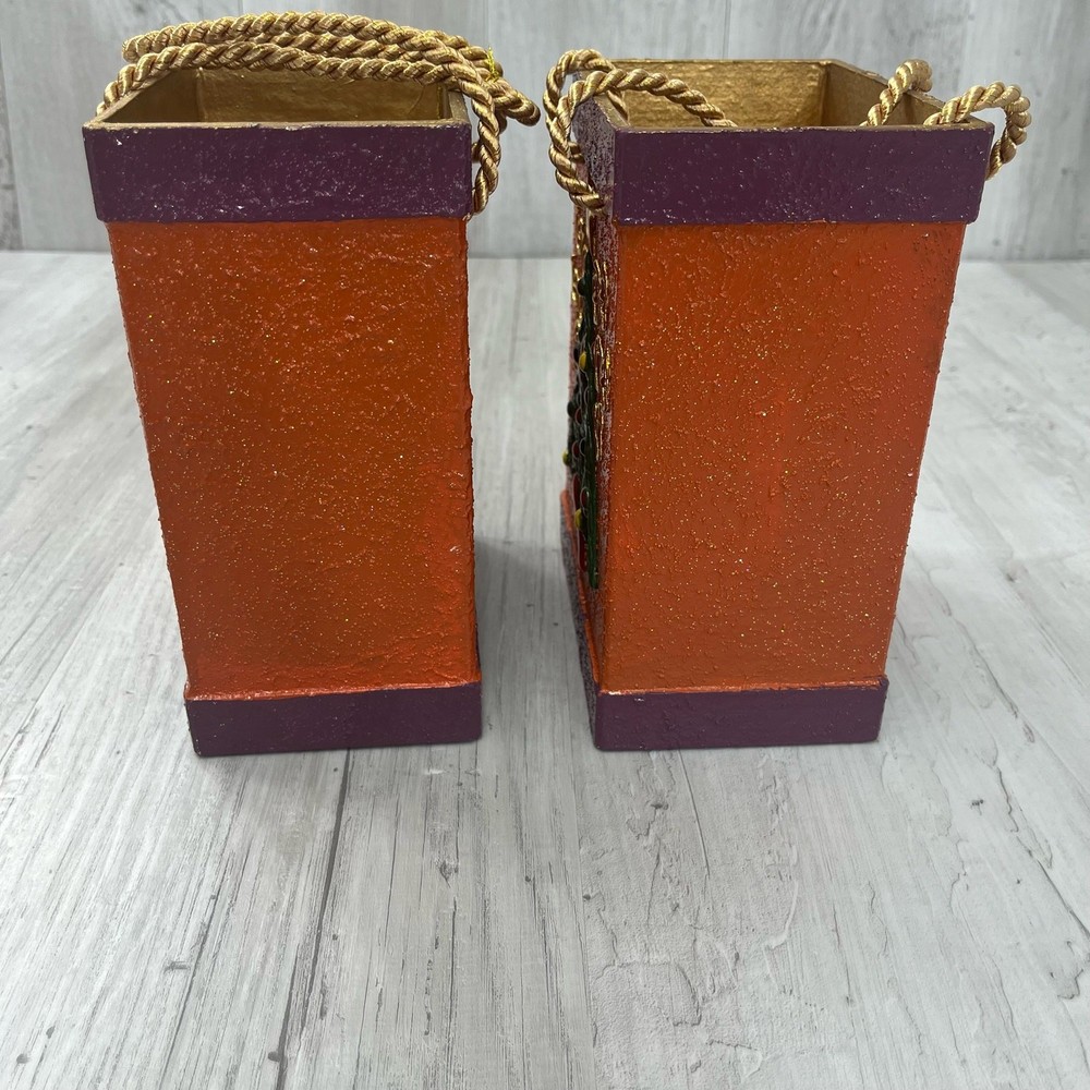 Balasi Export Holiday Tree Textured Ceramic Bags in Orange and Purple