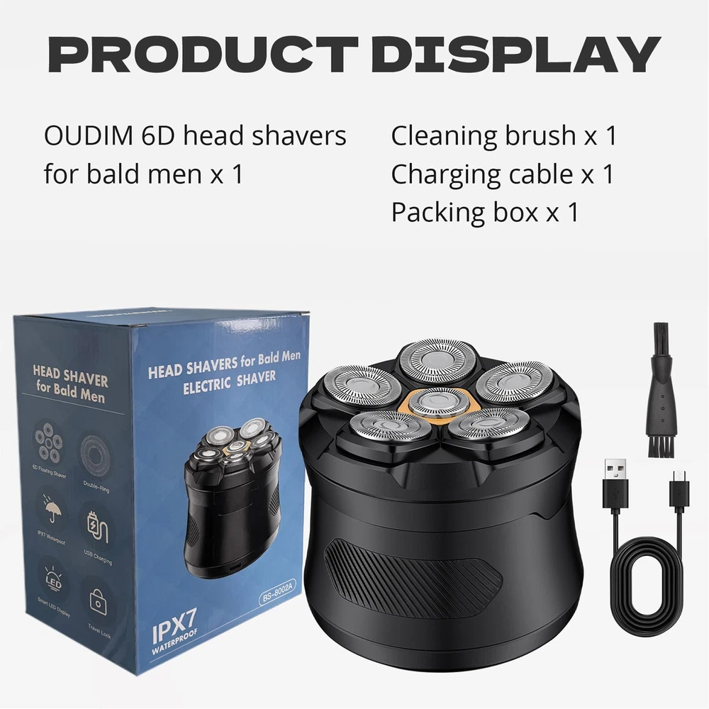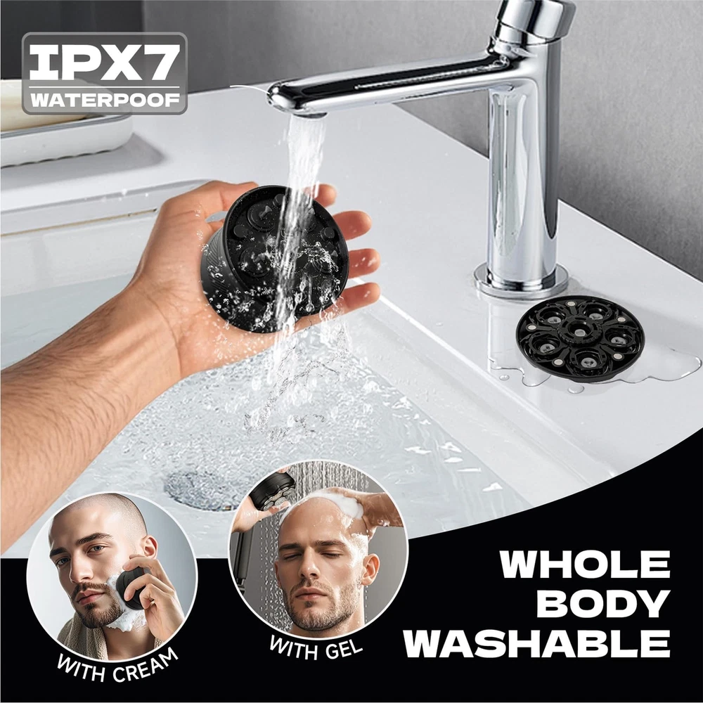 Experience a remarkably close and comfortable shave with this advanced hair removal device. Featuring a sleek, ergonomic design, it effortlessly glides across the contours of your head, delivering a smooth, clean cut with every pass. The precision-engineered rotary blades are engineered for efficient hair trimming, while the powerful motor ensures consistent performance. Crafted with durability in mind, this shaver is built to withstand the rigors of daily use. Whether you prefer a clean-shaven look or simply need to maintain your grooming routine, this versatile tool is an indispensable addition to your grooming arsenal. Achieve a polished, well-groomed appearance with ease. Powerful Rotary Shaver: This electric shaver features 6 high-precision rotary blades that efficiently cut hair at the root for a smooth, close shave. Cordless and Rechargeable: Equipped with a long-lasting lithium-ion battery, it offers up to 60 minutes of cordless runtime on a single charge. Contoured Design: The ergonomic, contoured shape fits comfortably in your hand, allowing for easy control and maneuverability during use. Wet/Dry Operation: Designed for versatility, it can be used for both wet shaves with shaving gel or foam, and dry shaves. Cleaning System: The included cleaning station automatically sanitizes and lubricates the shaver heads for optimal performance and longevity.