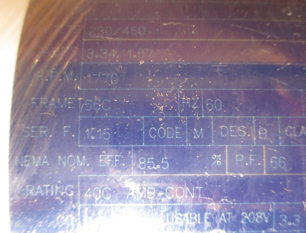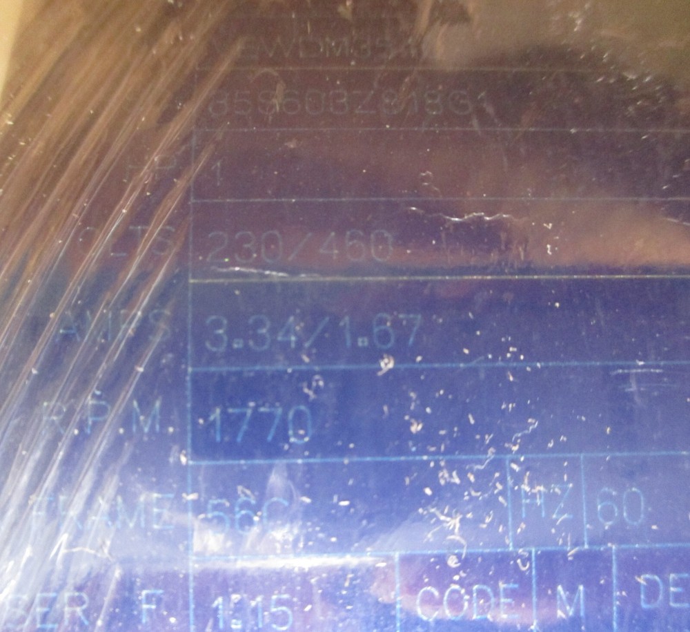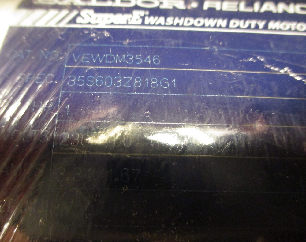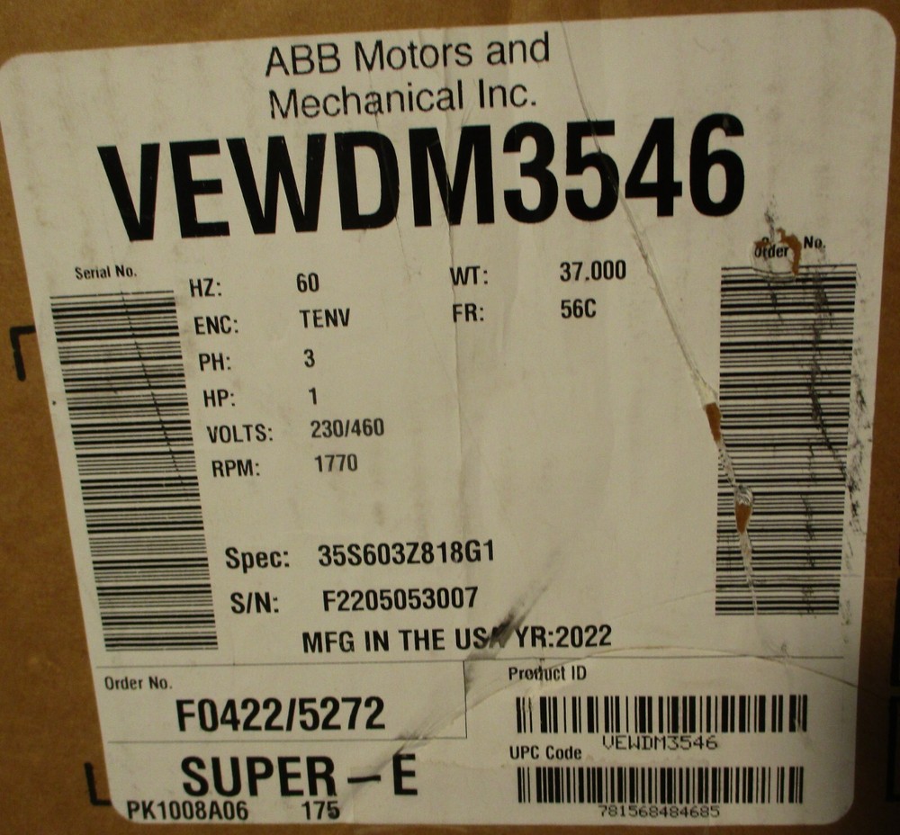 NEMA Design Letter: Design B (General Purpose) Enclosure Type: TENV (Totally Enclosed Non-Ventilated) Current Type: AC Brand: Baldor Model: VEWDM3546 NEMA Frame Suffix: C Insulation Class: F (Max 311°F) AC Phase: Three Phase AC Frequency Rating: 60 Hz Service Factor: 1.15 Country/Region of Manufacture: United States MPN: 25S603Z818G1 Seller Notes: “New in excellent condition” Shaft Diameter: 5/8 in Rated Load (HP): 1 Shaft Type: Keyed