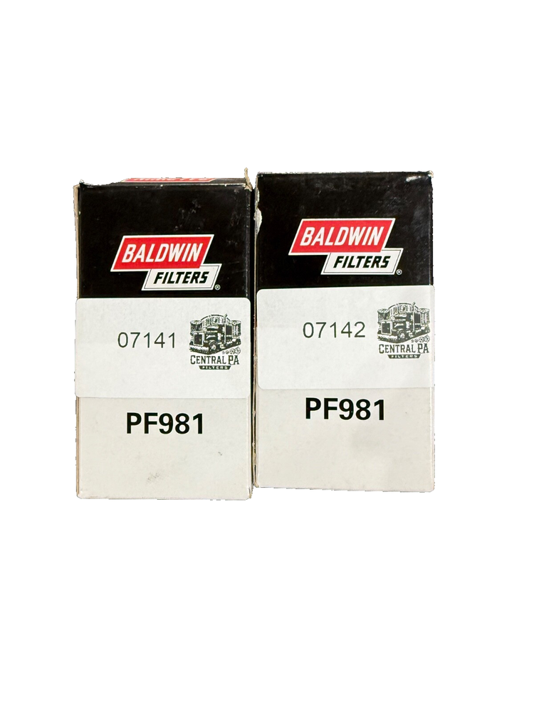 This is a Baldwin Fuel Filter model PF981, which is new old stock (NOS). It is a clamp-on style fuel filter made of metal with a painted finish. The item includes a rubber gasket for easy installation. It is designed for front placement on vehicles and manufactured in the United States. The fuel filter is suitable for various car and truck models, and it does not come with a manufacturer warranty.
