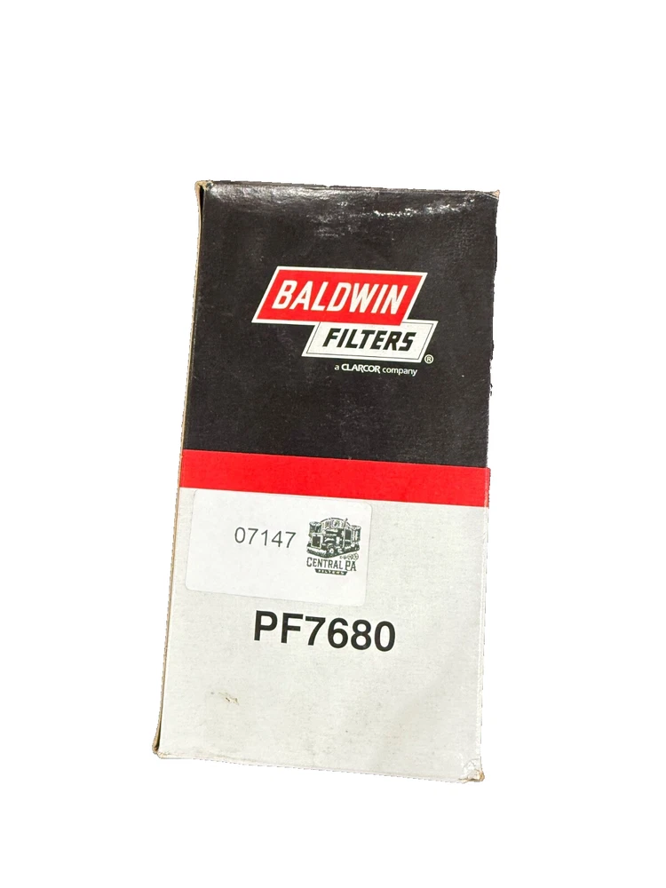 Baldwin Fuel Water Separator Filters PF7680 is a clamp-on metal fuel filter with a rubber gasket for easy installation. Made in the United States, it is designed for front placement on vehicles. The filter includes a gasket and is painted, with no manufacturer warranty. The brand is Baldwin, and the model number is PF7680.