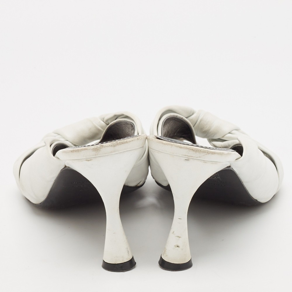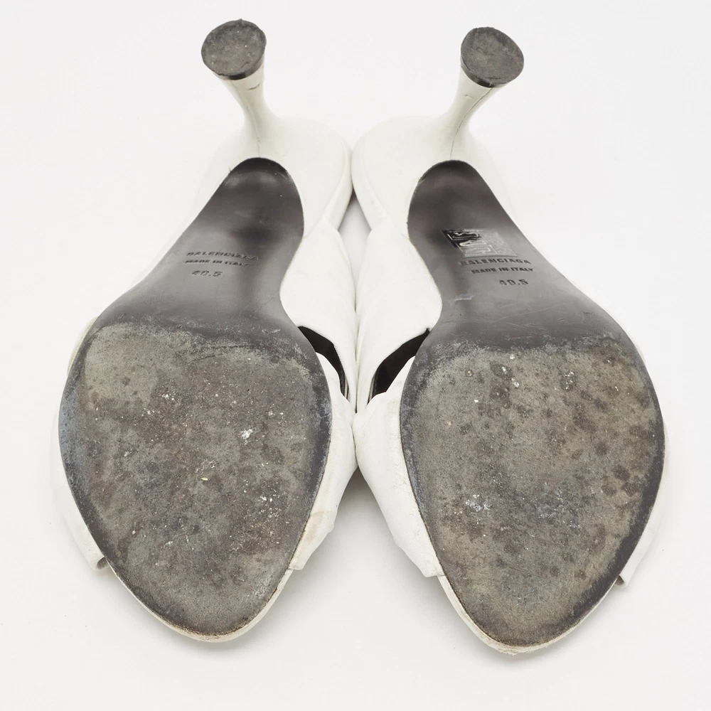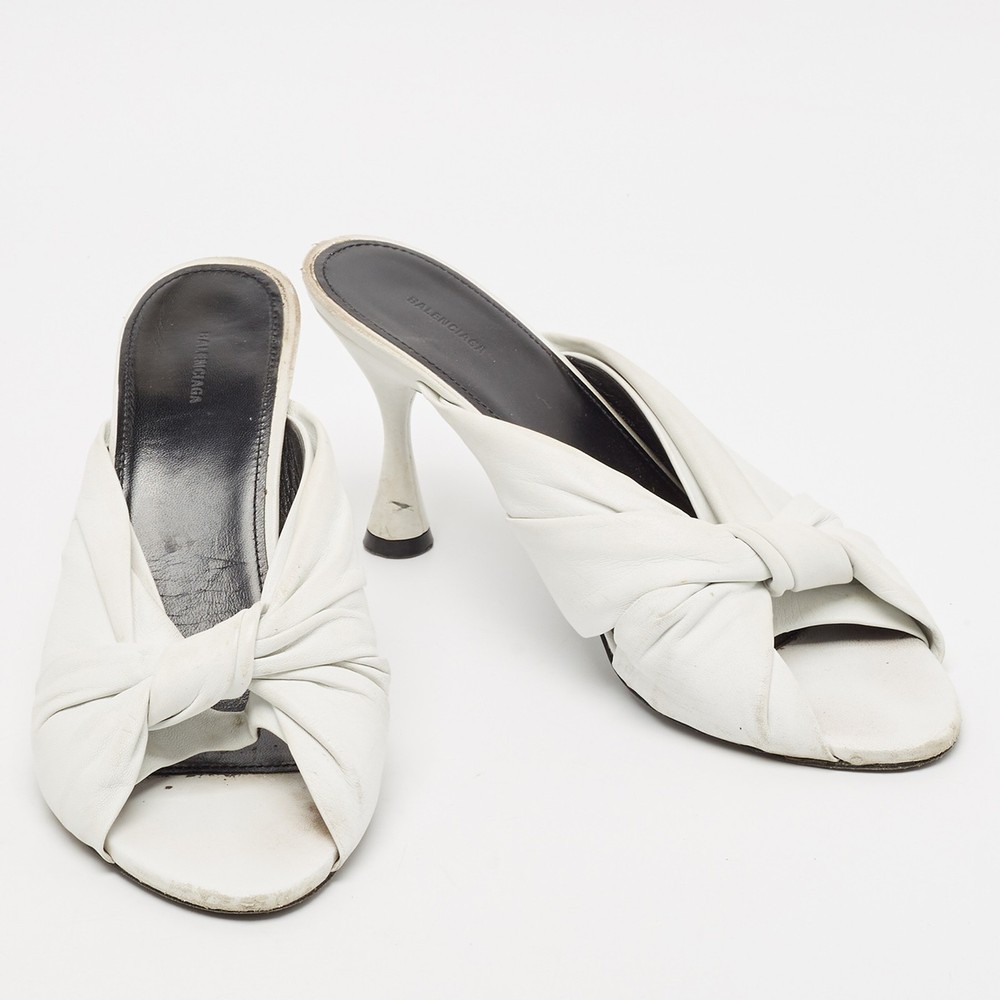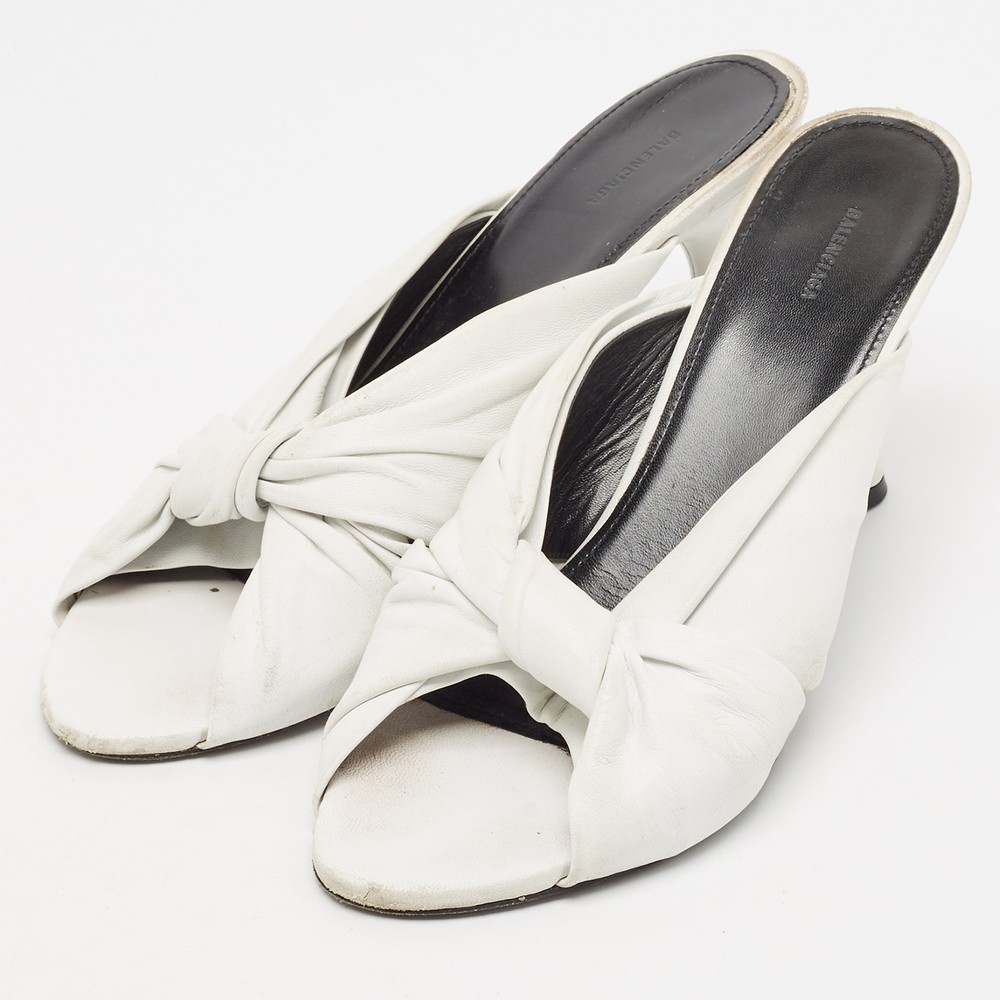 These white sandals will frame your feet in an elegant manner. Crafted from quality materials, they flaunt a classy display, comfortable insoles, and 9 cm heels.Certified by The Luxury Closet - This item has gone through a detailed authentication process overseen by our experts. We offer a lifetime guarantee of authenticity on all our items. Import duties, taxes and charges are not included in the item price. These charges are the buyers responsibility. Please check with your country’s customs office to determine what these additional cost will be prior to buying. Our eBay Store About Us Contact Us Add to Favorite Sellers Balenciaga White Leather Knot Open Toe Slide Sandals Size 40.5 $174.9 These white sandals will frame your feet in an elegant manner. Crafted from quality materials, they flaunt a classy display, comfortable insoles, and 9 cm heels. Product Details Brand Color White Dimensions Material Leather Size 40.5 Outsole Width 9 cm Outsole Length 26 cm Heel Height 9 cm Includes Original Dustbag Certified by The Luxury Closet This item has gone through a detailed authentication process overseen by our experts. We offer a lifetime guarantee of authenticity on all our items. How We Check The in-house team of experts at The Luxury Closet is highly trained to verify the authenticity and the condition of the luxury products. They ensure that only 100% authentic items are put on sale.The evaluation process is unique with its own mix of assessment criteria and differs according to the category. Each item is evaluated based on the following combination of hallmarks, hardware, stitching, symmetry, material, craftsmanship, stamping, codes, hologram stickers, and packaging. Our authenticators also check if the items have been modified or amended (e.g., aftermarket diamonds, replaced batteries, repaired bags, etc.) International Buyers Import duties, taxes and charges are not included in the item price. These charges are the buyers responsibility. Please check with your country’s customs office to determine what these additional cost will be prior to buying.