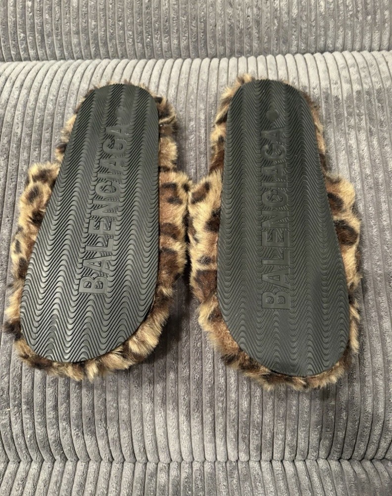 Balenciaga Leopard Print Faux Fur Women's Slide Slippers Brown Black