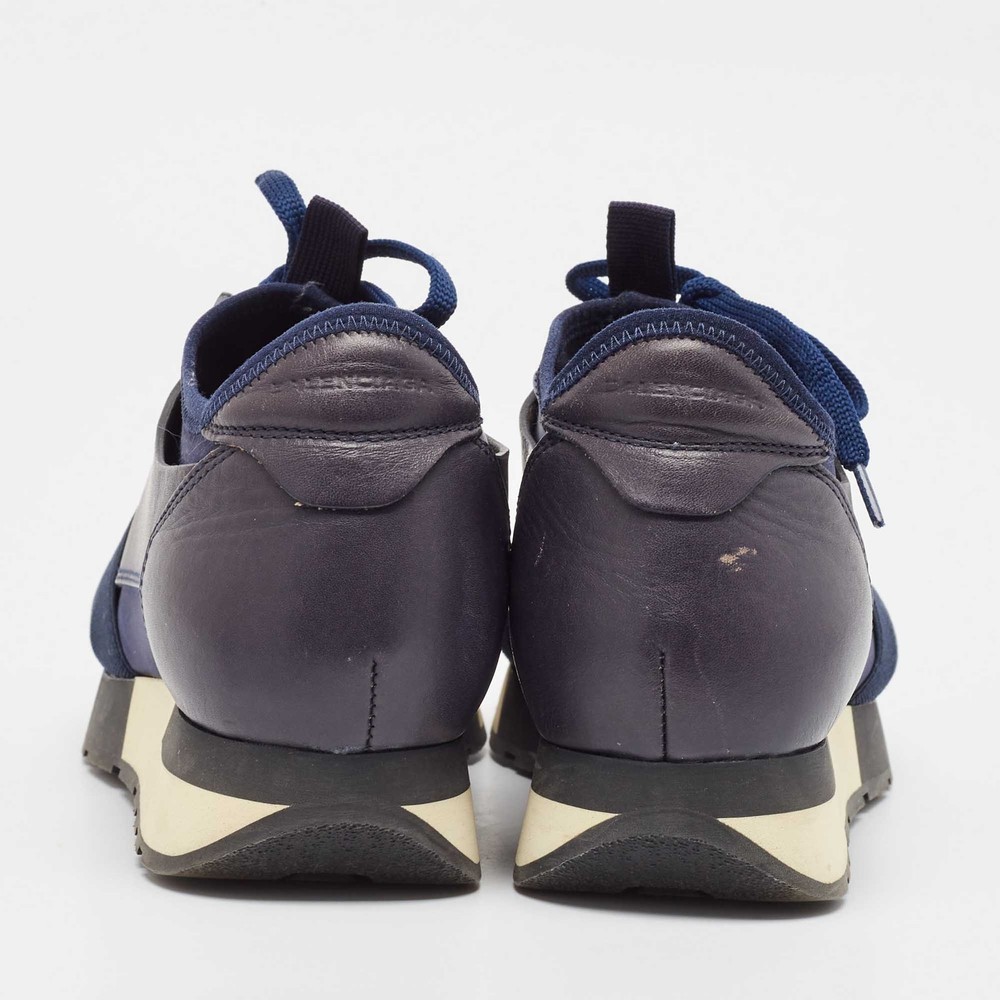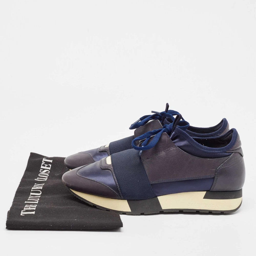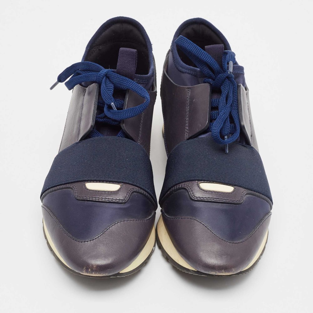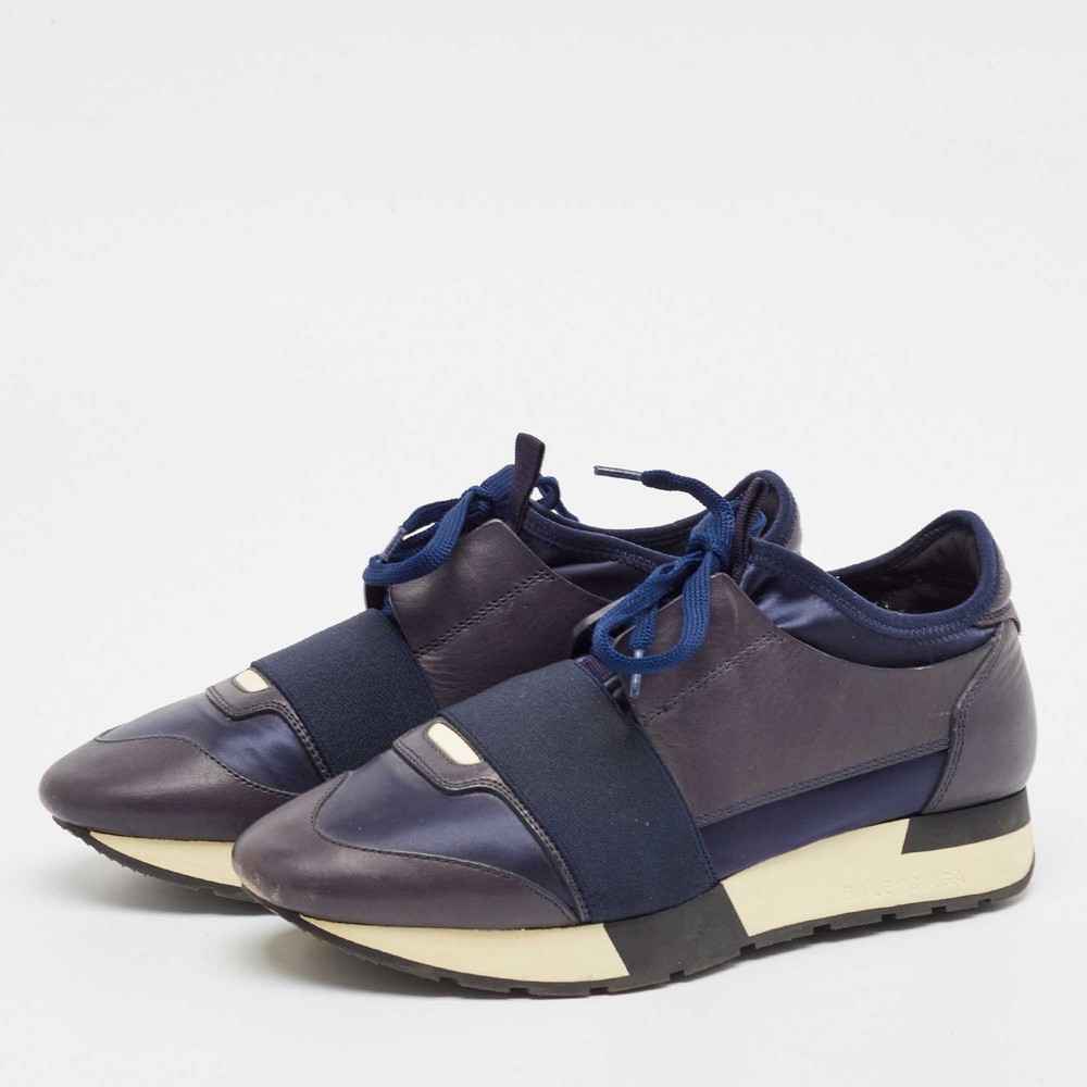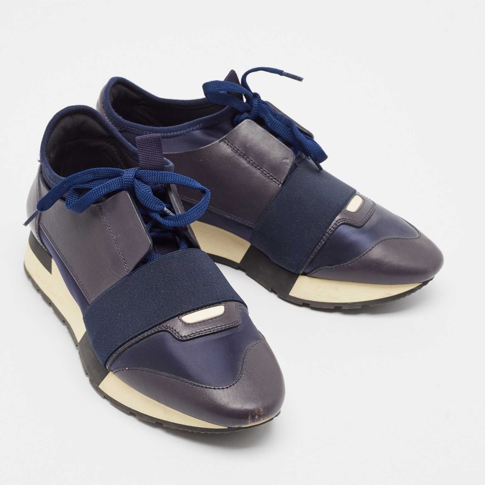 Our eBay Store About Us Contact Us Add to Favorite Sellers Balenciaga Navy Blue Fabric and Leather Race Runner Lace Up Sneakers Size 37 Elevate your footwear game with these Balenciaga sneakers. Combining high-end aesthetics and unmatched comfort, these sneakers are a symbol of modern luxury and impeccable taste. Product Details Brand Balenciaga Color Navy Blue Includes The Luxury Closet Packaging Outsole Length 27 cm Outsole Width 8 cm Size 37 Certified by The Luxury Closet This item has gone through a detailed authentication process overseen by our experts. We offer a lifetime guarantee of authenticity on all our items. How We Check The in-house team of experts at The Luxury Closet is highly trained to verify the authenticity and the condition of the luxury products. They ensure that only 100% authentic items are put on sale.The evaluation process is unique with its own mix of assessment criteria and differs according to the category. Each item is evaluated based on the following combination of hallmarks, hardware, stitching, symmetry, material, craftsmanship, stamping, codes, hologram stickers, and packaging. Our authenticators also check if the items have been modified or amended (e.g., aftermarket diamonds, replaced batteries, repaired bags, etc.) International Buyers Import duties, taxes and charges are not included in the item price. These charges are the buyers responsibility. Please check with your country’s customs office to determine what these additional cost will be prior to buying.