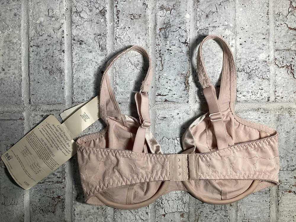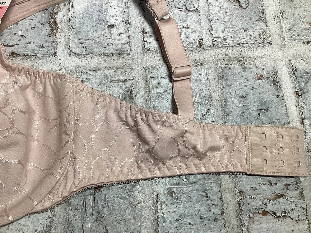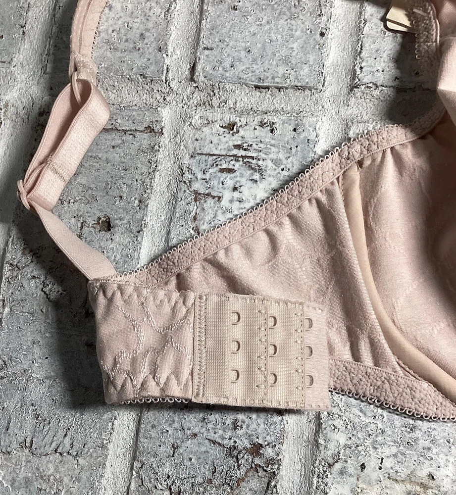 Nice bra, brand new. Cups are stretchy to accommodate different shapes. Three sets of hook and eye closure for better fit. Under wire for support. Pretty pink color. Bottom strap is 26.5 inches without stretching. Adjustable closure is approximately 2 inches. This is a very well made bra with good stretch to it. I'm happy to answer your questions. Please refer to the pictures for more details. Thank you for stopping by!
