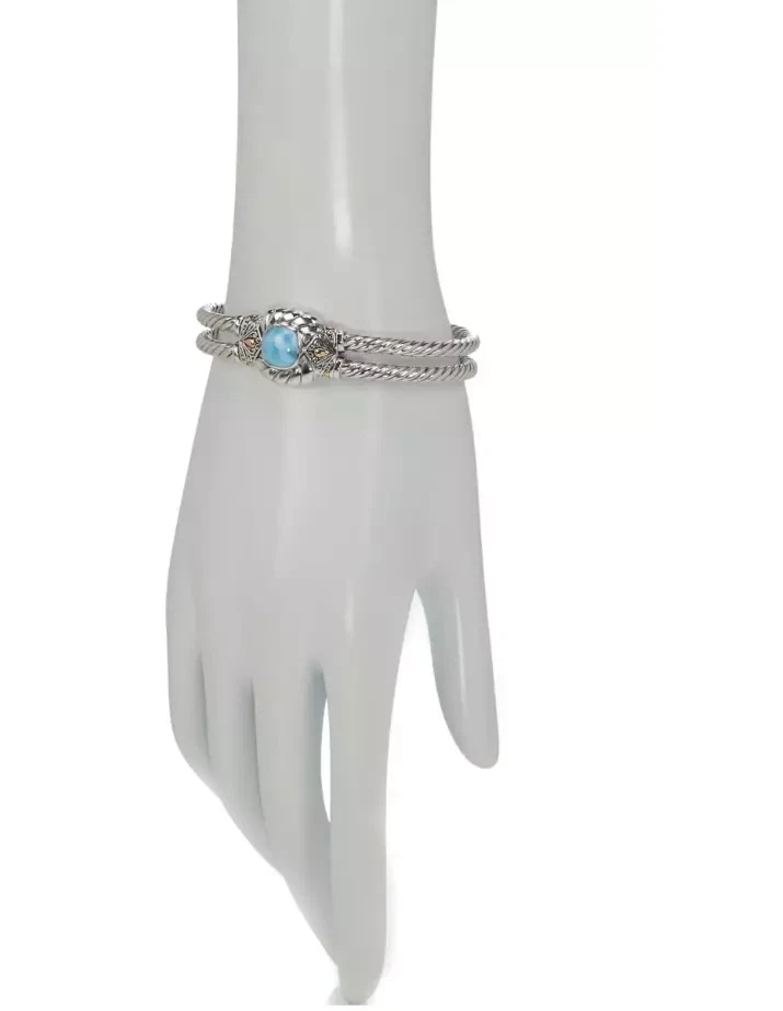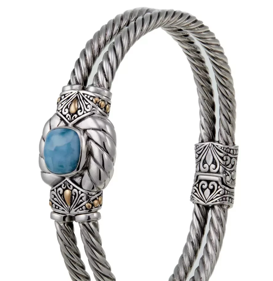 Description: Experience the allure of Bali with the Robert Manse Sterling Silver Larimar Bangle from the Bali Romanse Collection. This stunning 6-inch bracelet embodies the spirit of Balinese craftsmanship, featuring a beautifully hinged design that highlights a natural, round blue larimar stone at its heart. Crafted in 925 sterling silver, this piece merges traditional aesthetics with modern elegance, making it a timeless addition to any jewelry collection. Key Features: Premium Sterling Silver : Crafted with high-quality 925 sterling silver, offering durability and shine. Exquisite Larimar Stone : Showcases a natural, round-cut larimar stone known for its captivating ocean-blue hues. Bali Romanse Collection : Part of Robert Manse's exclusive collection inspired by Balinese art and culture. Comfortable Fit : 6-inch bangle with a hinged design for a secure and comfortable fit around your wrist. Versatile Style : Suitable for both formal and casual occasions, enhancing any ensemble with its unique presence. Ideal for Gifting : Comes in elegant packaging, perfect for special occasions like birthdays, anniversaries, or as a gift to yourself. Collectible Quality : A rare piece that combines traditional craftsmanship with a luxurious appeal, making it a prized addition to any collection.