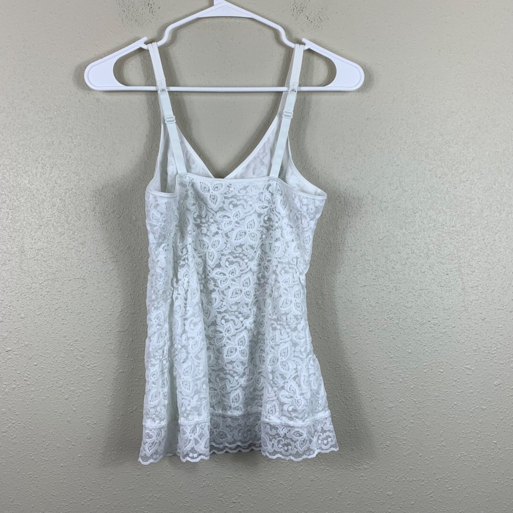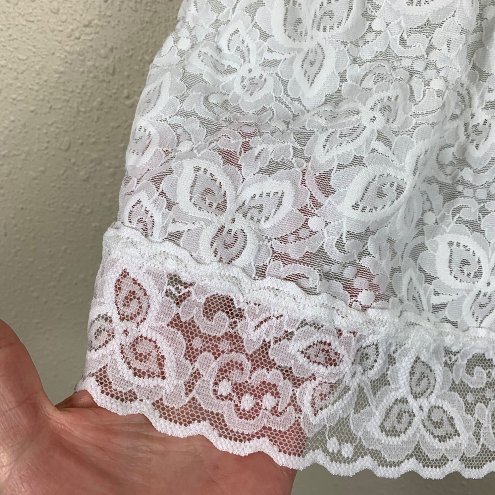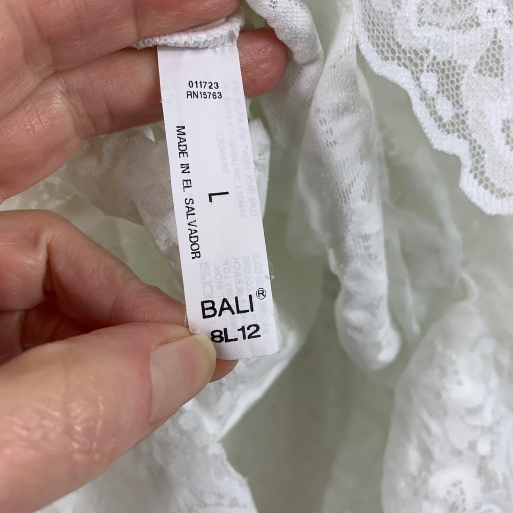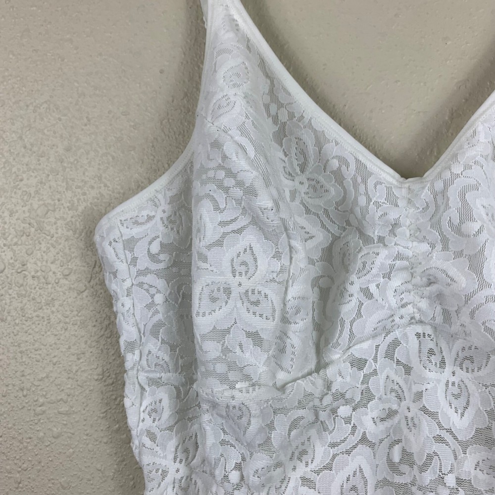 Bali Lace N’ Smooth Shaping Cami Coquette Babydoll White Size Large Excellent preowned condition! All over lace floral Babydoll style Sheer throughout except in the cups Adjustable straps 360 degree smoothing P2P: 15" Length: 20" Measurements are lying flat, and estimates only. 1P20 60-7776 3 oz Tags: sexy, flattering, shapewear, lingerie