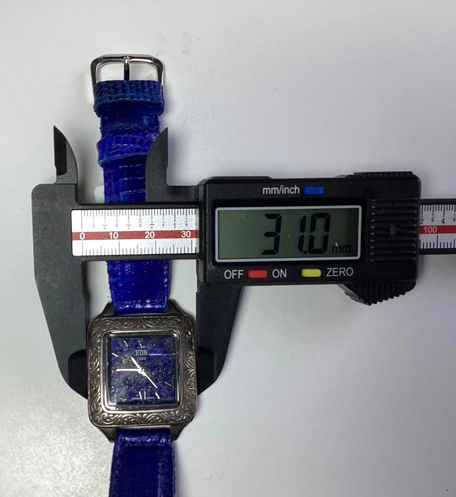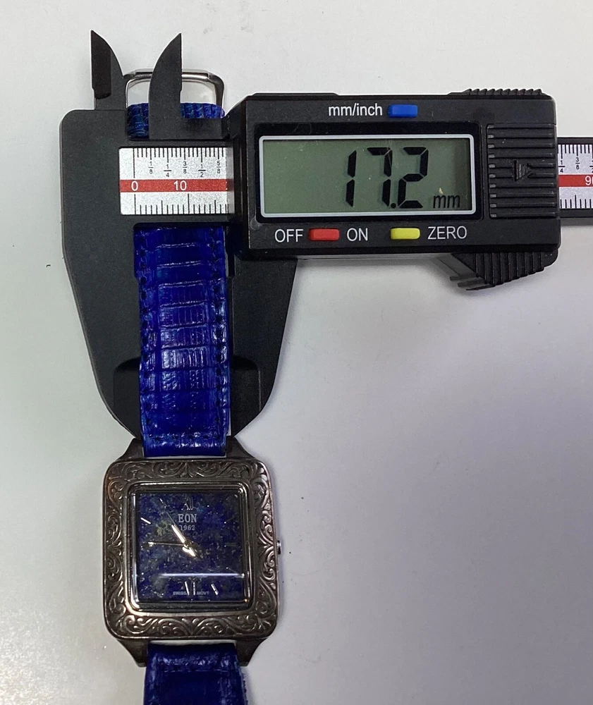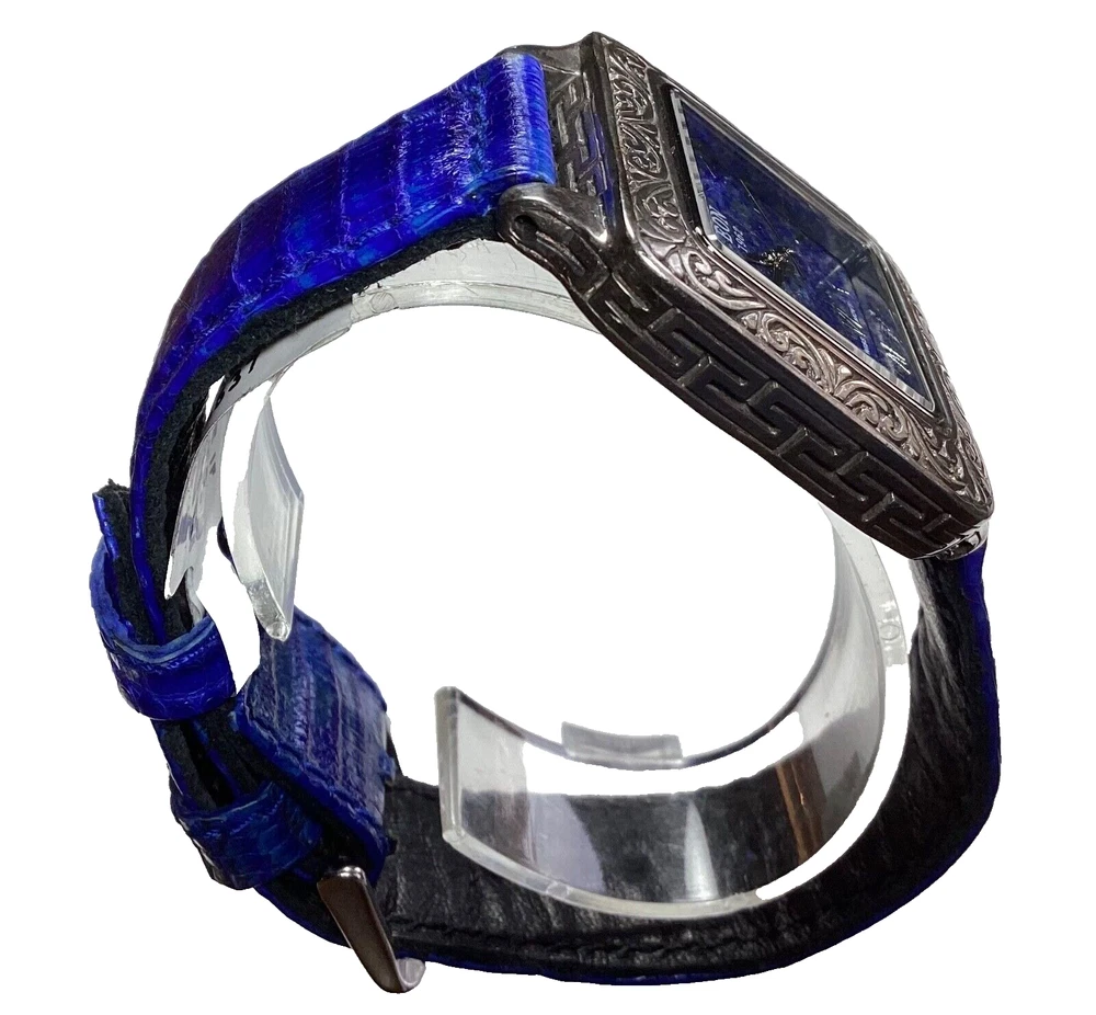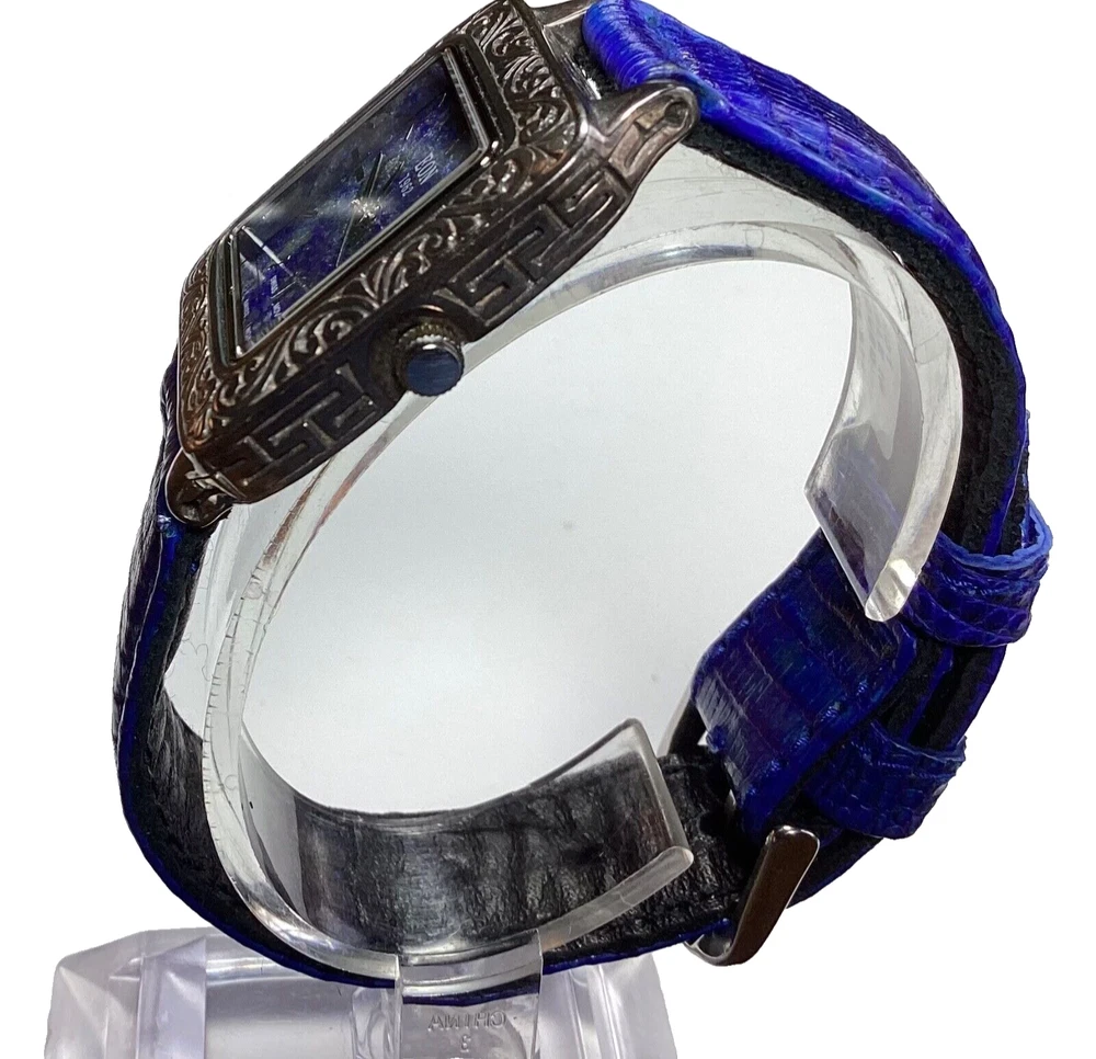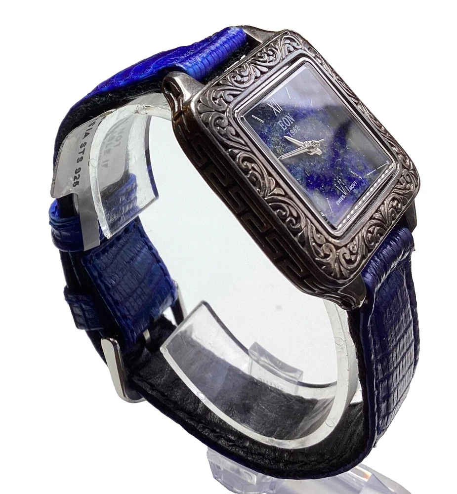 Case Material: Sterling Silver Indices: Roman Numerals Caseback: Snap Type: Wristwatches Bezel Type: Fixed With Original Box/Packaging: No With Papers: No Seller Warranty: No Band Material: Leather Style: Casual, Classic, Dress/Formal, Fashion With Manual/Booklet: No Dial Pattern: Lapis Lazuli Closure: Buckle Movement: Quartz Dial Color: Blue Watch Shape: Square Max Wrist Size: 7.26-7.5 in Country/Region of Manufacture: Switzerland Band Color: Blue Case Color: Silver Department: Women Water Resistance: 3 m (0.3 ATM) Features: 12-Hour Dial, Central Second, Fixed Bezel, Push/Pull Crown, Swiss Made, Water-Resistant Reference Number: 7195537 Display: Analog Band/Strap: Two-Piece Strap Brand: Bali Legacy