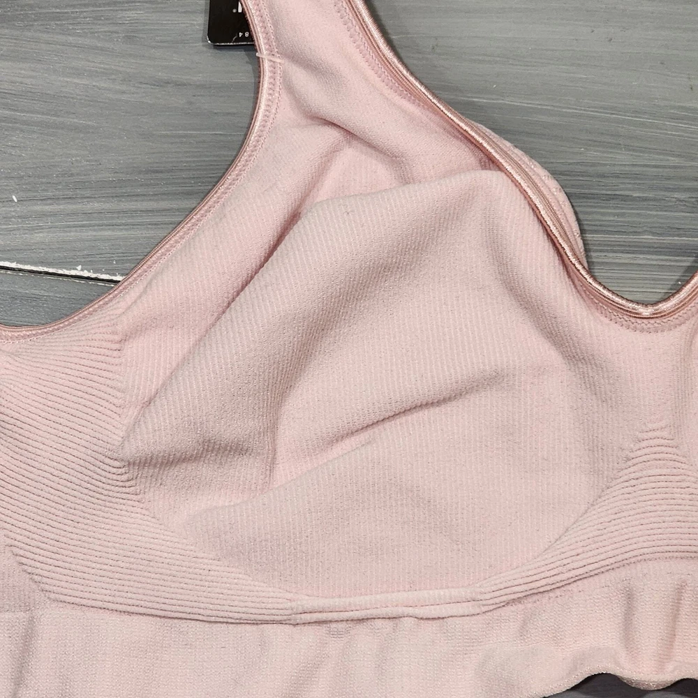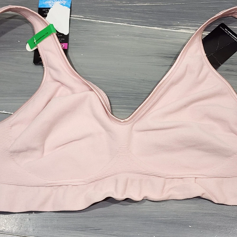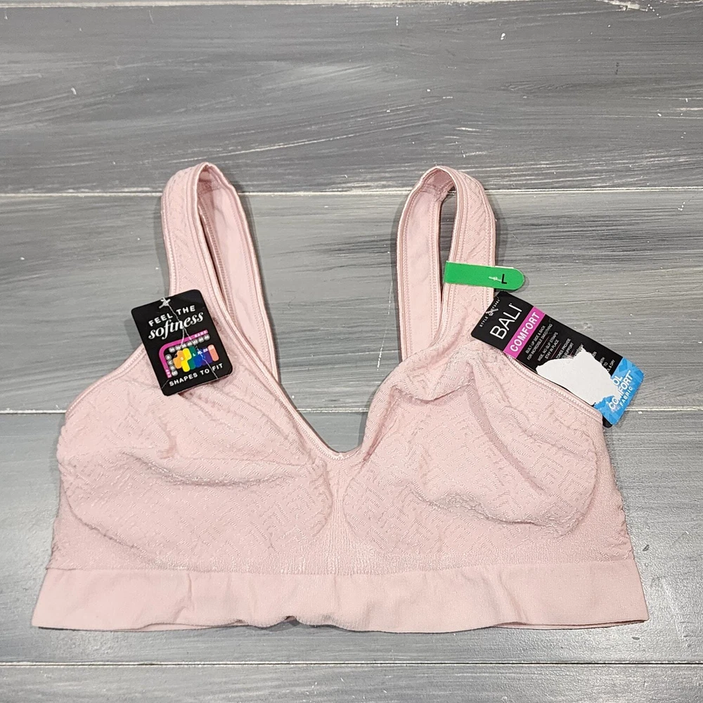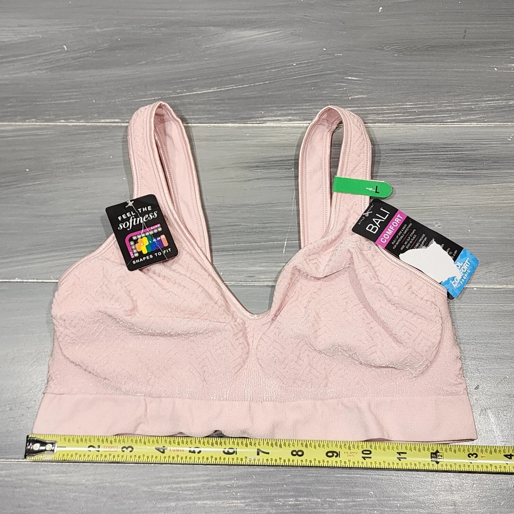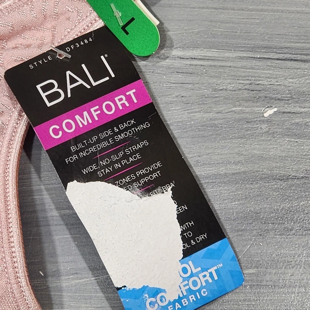 Bali Seamless Wireless Bra Comfort Revolution ComfortFlex Fit 3484 Large Nude FLAW: has some very light surface dirt or dye transfer on the inside strap. may or may not come out when washed, see 2nd photo. Wirefree 2 ply Stretchy stay-in place straps Wide, adjustable straps Full coverage full-figure fit Seamless unlined New with tags. Paper hang tag may be torn or have tape or stickers attached/detached Flaw as noted Inv# E221