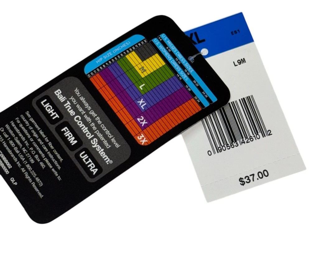 Bali Womens 2-Pack Shaping Brief Jacquard Mesh Tummy Panel FIRM Control White Size XL Women’s Size Available: X-LARGE/ 8 Body: 85% Nylon 15% Spandex Style: FIRM Control Shaping Brief TUMMY SOLUTION Retail Price: $37.00 + Tax Machine Washable Imported
