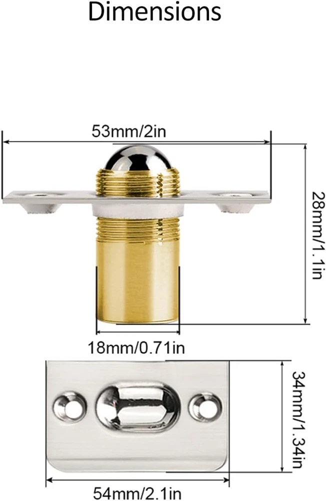Store New Arrivals Add to Favorite View Feedback Contact Ball Catch Door Hardware Jiayi 2 Pack Door Ball Catch Top of Door French Door Ball Catch Latch Adjustable Roller Ball Catch Drive in Ball Latch for Invisible Pantry Ball Bearing Latch Silver Description Item model number 1205 Part Number AUB08L7FQ7CW Batteries Required? No Item Package Quantity 2 Color Silver Brand Jiayi Product Dimensions 2"L x 1.1"W x 0.71"H Material Brass Country of Origin China Item Weight 4.6 ounces Installation Type Screw-In Shape Cylinder Batteries Included? No Color Name Silver Manufacturer Jiayi Exterior Finish Stainless Steel Size Name 2 Pack Size 2 Pack Invisible Door Using: Brass bullet door ball catch securely holds interior door closed and is nearly hidden from view. Generally used on closet doors where a latch is not used or needed. Stainless Steel And High Quality: Forged stainless steel castings, heavy-duty springs, and precision engineering make this ball catch door hardware an exceptionally durable and timeless choice. Ensure lifetime up to 20000 times. Adjustable Ball Tension: Dual adjustment ball bearing door catch for perfect strong tension to accommodate the exact amount of hold you need in any situation. Dimension Guide: Faceplate measures 1" W x 2 1/8" H. Cylinder measures 8/12" diameter x 11/10" deep. Matching strike plate measures 1 3/8" W x 2 1/8" L. Fastening hardware included. What You Get:2 x Closet Door Catch Ball; 2 x Faceplate; 2 x Strike Plate; Screws (Please measure the size before drilling the hole for the ball latch) Product Description High Qulity Ball Door Catch Heavy-Duty Spring Built in high quality 65mm strong spring, ensure lifetime up to 20,000 times. Solid Brass Housing Forged brass castings, make this ball latch an exceptionally durable and timeless choice. Adjustable Ball Latch for Different Door Gap Adjustable Ball Tension Adjustment ball bearing door catch for perfect strong tension to accommodate the exact amount of hold you need in any situation. Adjustment Applies Match narrow and wide door spacing by adjusting the length. High Applicability Waterproof&No Rust Dimensions Slight error in manual measurement. Quality Components Cosy home More Detail for Adjustable Roller Ball Door Catch 1 High Applicability 2 Waterproof&No Rust 3 Dimensions 4 Quality Components 5 Cosy home Door Ball Latch Installation Tips Widely used in home and kitchen! Highly recommended choices! Add to Cart Add to Cart Add to Cart Add to Cart Customer Reviews 4.6 out of 5 stars 3,262 4.6 out of 5 stars 3,262 4.6 out of 5 stars 3,262 4.3 out of 5 stars 1,132 4.1 out of 5 stars 2,929 4.3 out of 5 stars 17,166 4.4 out of 5 stars 2,713 Price $7.99 $ 7 . 99 $12.99 $ 12 . 99 $9.99 $ 9 . 99 $8.99 $ 8 . 99 $16.19 $ 16 . 19 $6.29 $ 6 . 29 $10.99 $ 10 . 99 Item Quantity 2 4 2 4 4 4 4 Color Black Silver Bronze SilverSilver Silver Silver Silver Installation Screw In Screw In Screw In Screw In/Self Adhesive Self Adhesive Screw In/Self Adhesive Screw In/Self Adhesive Material Stainless Steel Stainless Steel Stainless Steel Stainless Steel Stainless Steel Metal Metal Suitability Gate, Pantry Door, Closet Gate, Pantry Door, Closet Gate, Pantry Door, Closet Cabinet, Drawer, Closet Cabinet, Drawer, Closet Cabinet, Drawer Cabinet, Drawer ABOUT US We offer the best prices around on high quality products. Our E-store includes media such as books, movies, music and games while offering electronics, toys, sporting apparel, clothing, tools, general home, garden items and more. SHIPPING We are always working hard to ensure your package arrives as soon as possible. Please understand that some factors like weather, high postal traffic, and the performance of shipping companies are outside of our control. We offer free shipping to the lower 48 states and ship within 2 business days of payment, usually sooner. We do not accept P.O. Boxes. Please provide a physical address. RETURNS We offer a 30-Day Return Policy on items which you are not completely satisfied with. You have the option for a full-refund or an exchange of the item. No returns are available on items shipped outside of the USA. PAYMENT We accept PayPal. CONTACT US This page content is yet to come Please ad us to your favorite seller and visit again later Thank You CUSTOMER SATISFACTION We try our very best to make sure every customer is completely satisfied. If there's a problem, message us! We're happy to help.