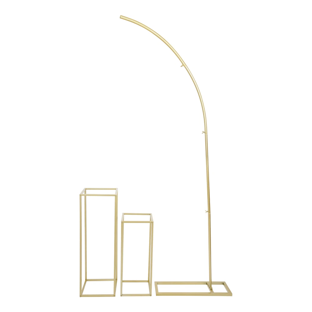 Ballon Arch Stand and 2 Flower Stands, Arch Backdrop Stand for Parties Wedding Description If you want to hold a beautiful and romantic wedding, graduation ceremony, or birthday party, then this wedding flower stand set can come in handy. This set includes one arch stand and two rectangular stands, meeting your different needs. They are made of high-quality steel pipes with a high-temperature baking paint process on the surface, which is sturdy and durable. Moreover, they have a fashionable appearance and are easy to install. You can place it indoors or outdoors. Having it will make your wedding even more brilliant. Key Features Sturdy and Durable: The product is made of high-quality steel pipes, using high-temperature baking paint technology, with high strength, wear resistance , and anti-corrosion , ensuring a long service life. Strong Load-bearing Capacity: The high-quality material and strong fixation give it an excellent load-bearing capacity of 22.05 lbs for each item, making it worry-free and safe for you to use. The Fun of DIY: The one unique arch stand and two rectangular stands make it suitable for most décor styles and even more suitable to complement the beauty of the wedding scene. You can combine them freely and decorate them with balloons, flowers, or LED lights (all not included) to make them even more creative. High Cost-effective: It is durable and can be reused many times. On different occasions, you can use different items to decorate it as needed. You don't need to buy it again, which greatly saves you a lot of money. Space-saving: It makes full use of vertical space, so you can place it against a wall to save space. You can also disassemble it into several parts for more space-saving storage. Easy to Clean: Thanks to its simple structure and smooth surface, you can easily clean it with a cloth and water. Easy to Assemble: With complete accessories and simple structure, you can easily complete the assembly yourself and enjoy the fun of the installation process. Nice Gift: This is a practical and beautiful gift for wives, parents, friends, and others. Whenever they use the backup stand , they will be reminded of the affection you share. Details Rectangular Base: It increases the stress area and can better maintain the stability of the product Wing Nuts: They are convenient for you to tighten the item by hand, making it less likely to wobble or sway. Application It is suitable for weddings, birthday parties, Christmas parties, happy Valentine’s Day decorations, banquets, anniversary celebrations, school opening ceremonies, graduation party decorations, candy buffets, dessert tables, bachelor parties, photo booth background decorations, store openings, baby showers, graduation parties, and other special events that you want to decorate. Specifications Style: Modern Shape: Arch, Rectangular Color: Golden Material: Steel Pipe Surface Treatment: High-temperature Baking Paint Mount Type: Floor Mount Assembly Required: Yes Number of Items: 3 Each Load-bearing Capacity: 10kg/ 22.05 lbs Gross Weight: 3.5kg/7.72 lbs Net Weight: 3.3kg/7.27 lbs Arch Stand Size: 60*20*200cm/23.62*7.87*78.74 in Larger Rectangular Stand Size: 27*27*80cm/10.63*10.63*31.5 in Smaller Rectangular Stand Size: 24*24*60cm/9.45*9.45*23.62 in Package Size: 62*30*8cm/24.41*11.81*3.15 in Package Included 1* Arch Stand 2* Rectangular Stands 1* Allen Key 1* Wrench 1* Product Diagram Notes Please note that this product does not include any decorative items. Children are not allowed to climb on this backup stand. Please place it on a flat floor for installation. Install the arch tubes first, then connect the base. Please carefully check whether the accessories are complete after receiving the product. Please do not place overweight objects on the product. If you put it too heavy, it is easy to break. Please allow the slight color difference caused by the shooting light and 1-3cm error due to manual measurement, and make sure you do not mind before you order. Welcome to highcredit1188 ~ 😊 If you have any question , please contact us , and we will reply you as soon as possible. Payment Delivery details Terms of sales About us Contact us Payment We accept ebay payment 。 Fees such as import duties, taxes are not included in the item price or shipping costs. These charges are the buyer's responsibility. Delivery details Shipping: 2-9 working days to: USA Terms of sales We maintain high standards of excellence and strive for hundred percent customer satisfaction. Feedback is very important to us. We hope that you contact us immediately before you give neutral or negative feedback, so that we can address your concerns. It is impossible to address issues if we do not know about them! About us Your satis faction is our ultimate goal. We work hard to earn your trust and future business. Our certified technicians have tested each item before shipping. The unit comes with 1 year limited warranty on all manufacturing defects. a) If you receive a defective item, you may return it or ask for a discount. Please contact us within 14 days after you receive the package. b) What you returned must be intact and in its original packaging as re? u. Customer is responsible for shipping costs of the returned item. c) We will cover the cost of shipping back t with the shipping rate indicated in the registration page. We will send you a new unit or refund the full payment you paid. Thank you. Contact us Business Hour Business Hour: Monday To Friday: 8:30 AM to 5:00 PM (Beijing China time) Due to time zones, our reply to your questions may not be immediately. But within above working time, we will reply your email within 24 hours. If it's non-workdays, please kindly be patient and wait till Monday. Please contact us with ebay message. Please feel free to contact us if you have any questions. Monday To Friday: 8:30 AM to 5:00 PM (Beijing China time) Due to time zones, our reply to your questions may not be immediately. But within abov