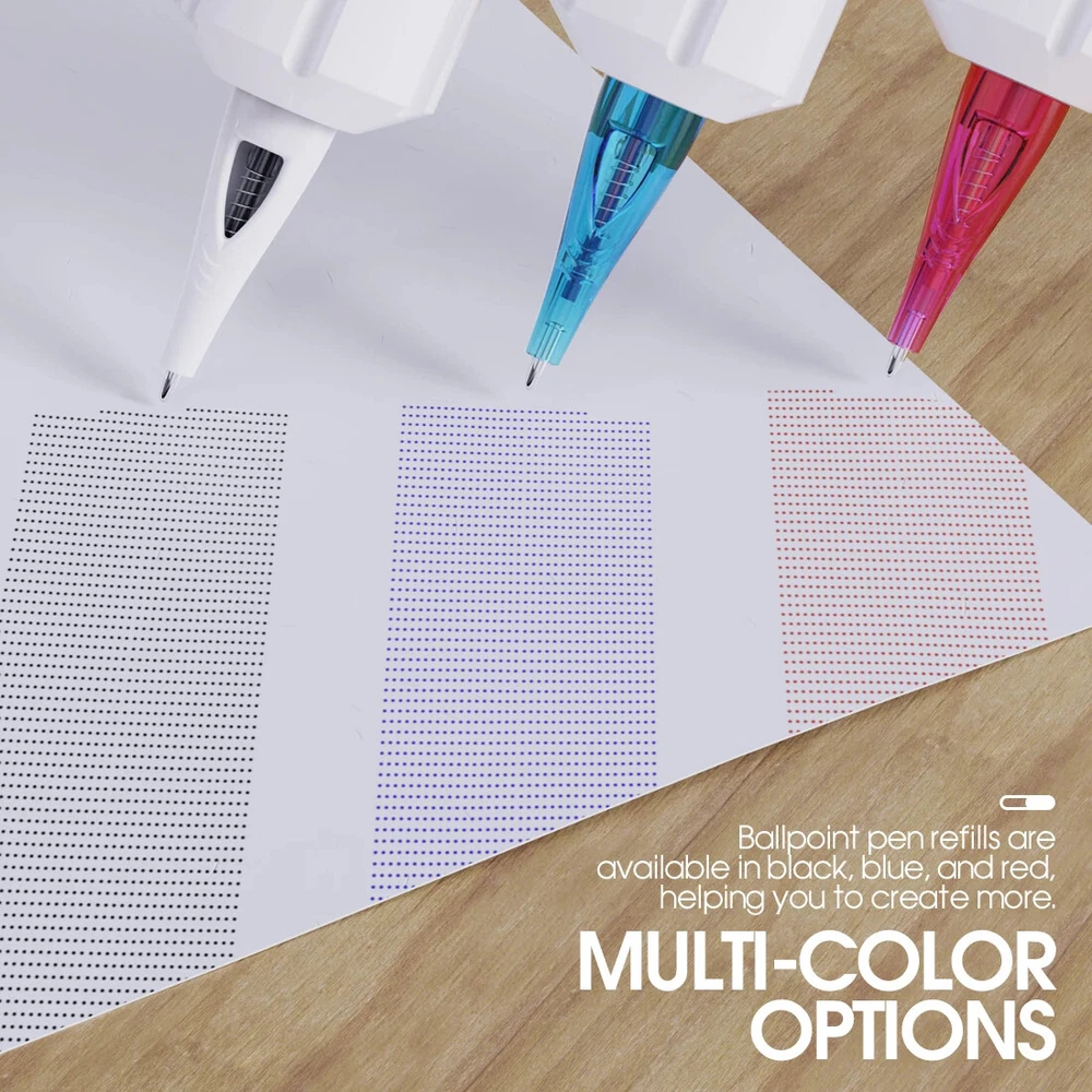 1. MULTI-COLOR OPTIONS: Ballpoint pen refills are available in black,blue,,red,purple,pink,and green. helping you to create more. 2. Let tattoo done on paper: Ballpoint pen tip cartridge needle.Bring the same experience feeling as a tattoo, making paper drawing become easy. 3. MORE COST SAVING The refill is durable and requires no more consumables, reducing the cost of learning to tattoo by 80%.