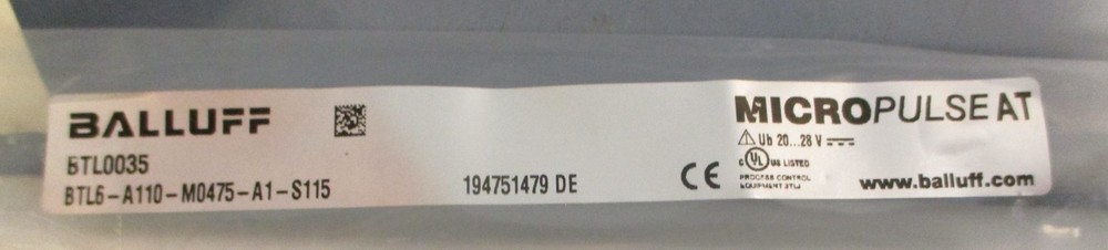 Transducer For sale is a Balluff BTL0035 Micropulse Transducer BTL6-A110-M0475-A1-S115 20-28 VDC. Item appears new and in excellent condition. Will come as shown and with what is pictured. May show minor imperfections but nothing that will impact performance. Thank you for looking and please let us know if you have any questions. eTech Surplus Rochester, NY Shipping: Charged according to location. Please note that eBay charges sales tax, we do not. We at eTech Surplus strive to honestly and accurately describe each item we sell. Please feel free to contact us with any questions. International Buyers - Please Note: Import duties, taxes and charges are not included in the item price or shipping cost. These charges are the buyer's responsibility. Please check with your country's customs office to determine what these additional costs will be prior to bidding or buying.