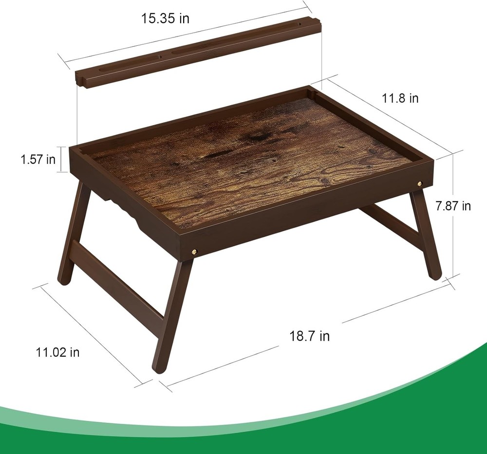 Premium Bamboo & Walnut Finish Crafted from durable, eco-friendly bamboo with a natural tiger walnut finish, this tray combines elegance with sustainability. Multi-Device Detachable Stand Features a removable slot to securely hold your tablet, phone, or e-reader while eating, working, or relaxing in bed. Space-Saving Foldable Design Compact folding legs collapse flat (15.7"x 11"x 1.57") for easy storage; expands to 20.5" x 9.3" x 6.9" for a sturdy, spacious surface. Ergonomic Built-in Handle Integrated handle ensures effortless portability between rooms, perfect for breakfast in bed, couch snacks, or home office use. Stable & Versatile Use Ideal as a bed desk, lap tray, or coffee table organizer—supports meals, laptops, crafts, and more without wobbling.