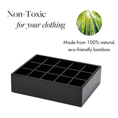 Return Policy Fast Delivery Trusted seller Bamboo Closet Drawer Organizer, 15 Compartments - Drawer Divider & Storage Box for Ties, Bras, Briefs, Socks & Jewelry - Storage Organizer for Dressing Room & Bedroom - Black Product Description Drawer Divider with 15 Compartments: Switch to an effortless organization with closet organizer - perfect for storing your bras, briefs, underwear, socks, and ties. It features removable dividers to create extra space and offer neat organization for both towels and t-shirts Multi-functional Storage: The drawer divider can also work as a storage box for your bathroom, dressing room, countertop,, and office. Its universal compartments can hold watches, keys, tie clips, keycards, cufflinks, and other daily essentials Durable and Water Resistant: The drawer storage is made from 100% natural solid bamboo which is stronger than wood. It is protected with 3 layers of waterproof coating which enhances durability and smoothness of the surface Perfect Gifting Option: Simplify organization and storage for your loved ones with this functional drawer divider. Its natural bamboo finish and minimal design makes it a great gifting option Long-term Sustainability with : The multi-compartment desk drawer organizer is made from 100% natural bamboo which is more sustainable than wood and an eco-friendly option for the planet Shipping Returns Payment Shipping Shipping is FREE to all addresses other than APO/PO boxes in the lower 48 states. All our stock ships from US-based warehouses. Shipped via USPS or UPS (depending on location and package weight) Unless stated otherwise, all orders will ship within 24-72 hours of your payment being processed. Check our feedback to see the great reviews of FAST shipping we offer. Returns Seller does not accept returns Payment We currently accept payment via eBay managed payments only. Once payment is cleared, we will dispatch your shipment within 1-3 business days. Please refer to the "Shipping" tab for more information regarding shipping speed to your destination.