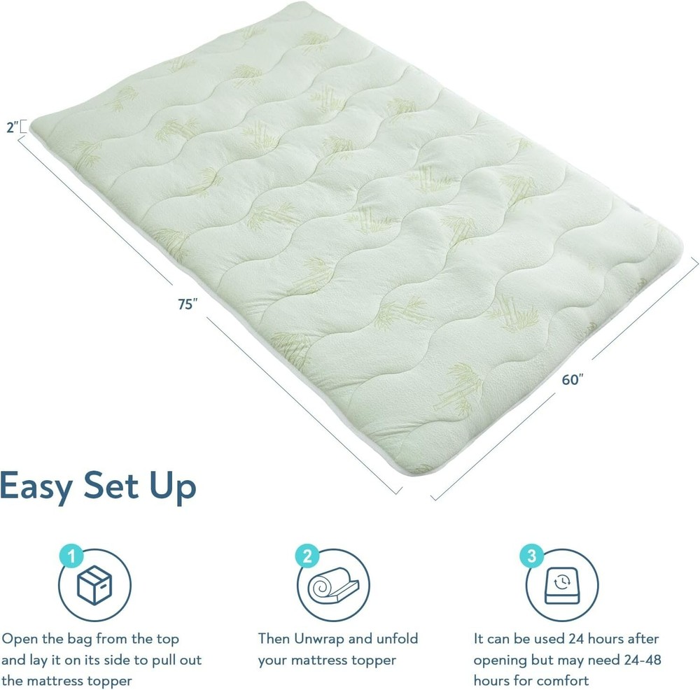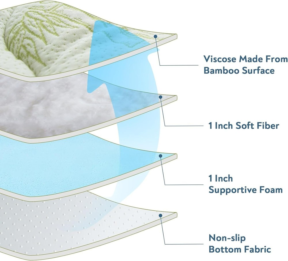 Bamboo Twin XL Cooling Mattress Topper with Thick Foam for Dorms