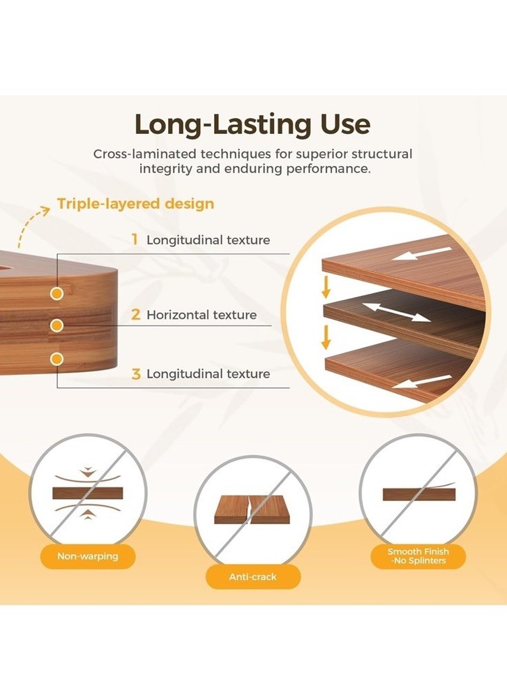 Bamboo Cutting Board for Kitchen, Wooden Cutting Board 3-Piece Set with Non-Slip