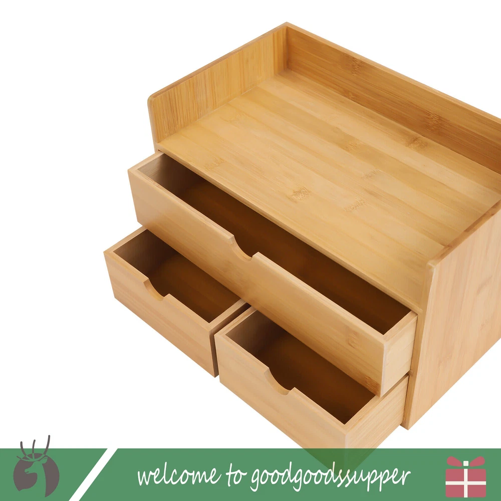 Application The Product Can Be Used to Store Various Daily Necessities, Such As Stamps, Notes, Paper Clips, Scissors, Bills, Pens, Pencils, Business Cards, and Notepads. It Is Also Applicable to Cosmetics Collections, Toiletries, Jewelry, Hair Accessories, Handicrafts, Kitchen Pantry Supplies, Letter Sorting Machines, Computer Technology Gadgets, Etc. in Addition to Storing Items, It Can Also Be Used for Decoration. Specification Color: Raw Wood Color Material: Natural Bamboo Surface Treatment: Painting Number of Drawers: 3 Net Weight: 2kg/4.41lbs Gross Weight: 2.1kg/4.63lbs Product Size: 30*19*20cm/11.81*7.48*7.87inch Package Size: 34*20*20.5cm/13.39*7.87*8.07inch Package Included 1*Desk Organizer Bamboo Desk Organizer with 3 Drawers Tabletop Cosmetic Storage Simple Design NEW Description The Desk Organizer Plays an Important Role in People's Storage of Daily Necessities. This Product Is Made of Natural Bamboo, Which Is Harmless , Environment-friendly , and Durable, and You Can Use It with Confidence. in Addition, the Three Drawers plus the Large Space on the Top of the Product Can Meet Your Daily Needs, and Also save the Tedious Steps of Installation. We Believe That This Product Will Not Disappoint You. Key Features User-friendly Material: This Desk Organizer Is Made of Natural Bamboo, Which Is Durable, Environmentally Friendly , and Harmless, and Will Not Pose a Threat to Human Health. at the Same Time, the Surface of the Product Is Also Coated with Environment-friendly Paint, so You and Your Family Can Use It with Confidence. Wide Space: the Desk Organizer Has Three Movable Drawers, One Above and Two Below, Which Can Store Many Daily Items, Such As Keys, Cosmetics, and so on. at the Same Time, the Items, Such As Vases and Impurities Can Also Be Placed on Top to Meet Many Needs in Your Daily Life. Beautiful Appearance: the Product Is a Raw Wood Color, with Smooth Lines, It Is Full of Modern and Fashion Sense, Which Will Make Your Room More Attractive. Fully Featured: in Addition to Daily Storage, the Item Can Also Be Used for Decoration, Making Your Room Colorful and Adding Atmosphere. Ready to Use: the Desk Organizer Has Been Assembled Before Shipment, so You Can Use It Directly, Greatly Saving Your Time. Ideal Gift: with a Fashionable Appearance and Enough Space, This Product Can Be Regarded As a Precious Gift for Housewarming, Birthdays, and Holidays. Small Floor Area: the Size of the Desk Organizer Is 12.99*7.48 inch , so You Can Put It in the Living Room, Bedroom, and Other Places at Will, Which Not Only Facilitates Your Daily Life but Also Does Not Occupy Too Much Space. Easy to Clean: the Product Has a Smooth Surface. When There Is Dust on the Surface, You Can Directly Wipe It with Paper or a Towel. Quality Assurance: We Have Been Working Hard to Provide Better Service and Quality for Our Customers, Which Is Our Goal. If There Is Any Quality Problem with Our Products. Please Contact Us in Time. Details Groove: There Is a Groove Above Each Drawer, Through Which You Can Easily Open and Close the Drawer, Which Is Very Convenient. Baffles: Baffles Are Set on Three Sides of the Top of the Product to Prevent Objects from Falling and Reduce Losses. Round Corners: the Desk Organizer Is Designed to Be Round As a Whole. Compared with the Traditional Square Corners, It Can Better Protect Your Safety and Prevent Skin from Being Scratched. Application The Product Can Be Used to Store Various Daily Necessities, Such As Stamps, Notes, Paper Clips, Scissors, Bills, Pens, Pencils, Business Cards, and Notepads. It Is Also Applicable to Cosmetics Collections, Toiletries, Jewelry, Hair Accessories, Handicrafts, Kitchen Pantry Supplies, Letter Sorting Machines, Computer Technology Gadgets, Etc. in Addition to Storing Items, It Can Also Be Used for Decoration. Specification Color: Raw Wood Color Material: Natural Bamboo Surface Treatment: Painting Number of Drawers: 3 Net Weight: 2kg/4.41lbs Gross Weight: 2.1kg/4.63lbs Product Size: 30*19*20cm/11.81*7.48*7.87inch Package Size: 34*20*20.5cm/13.39*7.87*8.07inch Package Included 1*Desk Organizer Notes Please Do Not Soak It in Water. Please Allow the Slight Color Difference Caused by the Shooting Light and 1-3cm Error Due to Manual Measurement, and Make Sure You Do Not Mind Before Ordering. Payment Delivery details Terms of sales About us Contact us Payment We accept ebay payment 。 Fees such as import duties, taxes are not included in the item price or shipping costs. These charges are the buyer's responsibility. Delivery details Shipping: 2-9 working days to: USA Terms of sales We maintain high standards of excellence and strive for hundred percent customer satisfaction. Feedback is very important to us. We hope that you contact us immediately before you give neutral or negative feedback, so that we can address your concerns. It is impossible to address issues if we do not know about them! About us Your satis faction is our ultimate goal. We work hard to earn your trust and future business. Our certified technicians have tested each item before shipping. The unit comes with 1 year limited warranty on all manufacturing defects. a) If you receive a defective item, you may return it or ask for a discount. Please contact us within 14 days after you receive the package. b) What you returned must be intact and in its original packaging as re? u. Customer is responsible for shipping costs of the returned item. c) We will cover the cost of shipping back t with the shipping rate indicated in the registration page. We will send you a new unit or refund the full payment you paid. Thank you. Contact us Business Hour Business Hour: Monday To Friday: 8:30 AM to 5:00 PM (Beijing China time) Due to time zones, our reply to your questions may not be immediately. But within above working time, we will reply your email within 24 hours. If it's non-workdays, please kindly be patient and wait till Monday. Please contact us with ebay message. Please feel free to contact 
