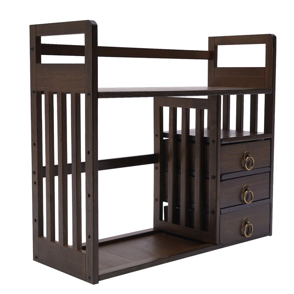 Bamboo Desktop Bookshelf Organizer with 3 Drawers for Office Storage