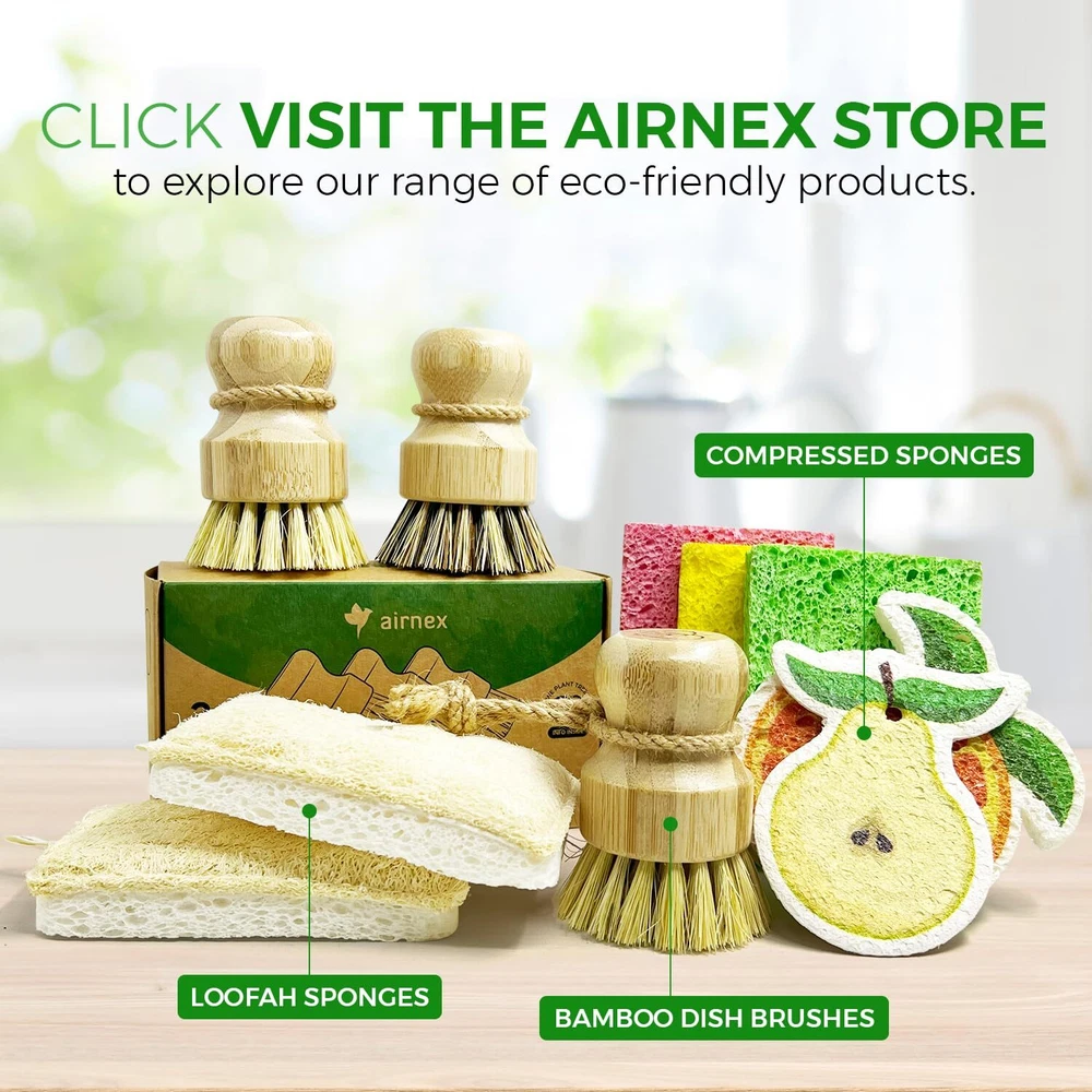 Bamboo Dish Brush Set of 3, 100% Plant-Based Kitchen Dish Brush Bamboo with Sisal and Coconut Bristles, 2 Brush Types, No Scratch Wood Sish Scrub Brush for Dishes, Quick-Drying, Odor Free NATURAL WOOD SCRUB BRUSH FOR DISHES - Make an eco-conscious choice with an AIRNEX wooden brush for dishes. Its sturdy bamboo head & high-density sisal and coconut bristles can outlast regular kitchen brushes for cleaning, without getting stinky. VERSATILE CLEANING - The set offers two dish scrubber brush types: 2 pcs light brush (medium stiff sisal bristles) ideal for everyday washing; and 1 pc dark brush (strong blend of sisal and coconut bristles) engineered for heavy scouring. 100% PLASTIC FREE - These bamboo kitchen brushes for dishes are plant-based, unlike usual scrubbers that pollute nature with microplastics. No glue or synthetics, just high-quality craftsmanship to prevent unpleasant odors & frequent replacement. NON-SCRATCH COMFORT - The non scratch kitchen scrub brushes are ideal for hard to reach spots, removing tough grime without leaving scratches. Designed to prevent hand fatigue, its ergonomic grip also keeps you from touching food wastes directly. PLANET-CONSCIOUS - AIRNEX is committed to defending the climate. All of the dish washing brush's packaging is recyclable and plastic-free. AIRNEX has also teamed up with 'Trees for the Future' to support reforestation, your purchase can result in two new trees. SHIPPING - We offer FREE shipping on all orders! - We ship within 3 business days of payment, usually sooner - We use a selection of shipping services such as UPS, FedEx, USPS etc - We only ship to the lower 48 states, no APO/FPO addresses or PO Boxes allowed International buyers – please note: Import duties, taxes, and charges aren't included in the item price or postage cost. These charges are the buyer's responsibility. - Please check with your country's customs office to determine what these additional costs will be prior to bidding or buying. - We have confidence in our products, but if you are not fully satisfied please contact us within 30 days of purchase and you will get full refund. * Order Cancellation Policy ** You can return a product for up to 30 days from the date you purchased it. 1. The seller reserves the right to cancel the special case only due to eBay cancellation fee. 2. The decision of seller is the final. 3. The seller will respond to the cancellation request within 2 business days. Please wait for the result of cancellation. 4. In case the cancellation is not completed by some reasons, the buyer can follow the options below to get the refund. 4.1 The buyer can reject the item when it arrives. 4.2 The buyer can send the item back to the seller within 30 days If the buyer receives item (USA Shipment ONLY). The seller will provide the FREE return label to the buyer when the buyer opens " Return Item" case on eBay by using the reason as "Change my mind" ONLY. 5. When buyer has placed the order. The order will be processed and completed by automatic warehouse system within 5 minutes. In case that buyer sends the cancellation request after 5 minutes of placing the order, the request will be rejected. **Sending direct message to cancel the order is not allowed for every case.* Return Policy For the return case - If buyer would like to return the items for refund or replacement, please CONTACT SELLER to receive the free return label from seller. The refund or replacement will be processed with the tracking number of return label which is provided by seller only. The other ways of return which are not approved by seller will not be processed for the refund or replacement. CUSTOMER SERVICE - We try our best to make sure every customer is completely satisfied. - If there's a problem, feel free to message us! - We're happy to help.