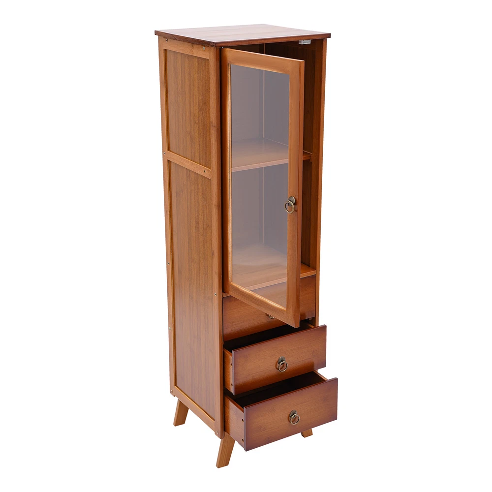 Kitchen Bamboo Storage Cabinet with Drawers Freestanding Pantry Cupboard Description The afternoon sunshine, a book and a cup of tea are the meaning of life. With a single cabinet door and three-drawer design, this wood cabinet can organize your items in order and let you experience simple life. It can adapt to any home style, adding elegance to your room. The raised design of the four legs provides strong support for the product while also making it easier to clean. Key Features High-quality Material: The product made of high-quality bamboo, acrylic, and hardware has high wear resistance and strong pressure resistance, thus having a long service life. Multiple Layout: The double-tiered design and the closed space of three drawers can meet your various storage needs and provide you with ample storage space. High Stability: The sturdy structure of the rectangular body and the 4 legs at the bottom provide stability and durability to the product. Each tier can easily withstand 22.05 pounds of cargo under even force. Waterproof Surface: The eco-friendly varnished surface of the product is moisture resistant, making it ideal for storage in bathrooms and kitchens. Classic Appearance: The smooth rectangular cabinet has a classic brown color, making it an attractive choice for any home decoration from traditional to modern. Considerate Design: The design of acrylic doors and drawers can protect your products from light exposure, temperature, dirt and dust so that they can keep clean and tidy. Easy to Clean : The smooth surface and simple product structure make it easy to clean. You just need to wipe it with a wet rag Raised Foot Design: The raised support foot can effectively avoid moisture and make the center of gravity of the product more stable. The height of 3.9 inches can allow the sweeping robot to enter and exit freely so that the bottom space can be cleaned more thoroughly. Easy to Assemble: All necessary hardware and electronic manual in English (If you need it, please contact the customer service staff) can help you complete the installation quickly. Details Exquisite Accessories: The high-quality round design plus metal material add a metallic luster to the product and bring comfortable feel. Well-designed Door: The cabinet door with magnetic suction design is easy to close and can prevent items from falling out. In addition, the clear acrylic door can block dust and make interior items visible at a glance. Application The product can be used in the kitchen, bathroom, bedroom, and living room, and as a sideboard, storage cabinet, etc. Specification Color: Brown Assembly Required: Yes Material: Bamboo, Acrylic, Hardware Process: Spray Paint ( Environmental Varnish ) Mounting Type: Floor Mount Number of Tiers: 5 The Max. Load of Each Tier: About 10kg/22.05lbs (Under Uniform Force) Drawer Height: 12cm/4.7in Leg Height: 10cm/3.9in Cabinet Door Height: 58.5cm/23in Cabinet Door Inner Laminate Height: 29cm/11.4in Product Size: 32*29*110cm/ 12.6*11.4*43.3 in Package Included 1 * Cabinet 1 * Chinese Manual All Accessories for Installation Notes Bamboo products are from natural materials, inevitably there will be different textures, bamboo knots, bamboo halos, bamboo gaps, bamboo spots, and other phenomena, which will not affect the beauty and use. Please do not use corrosive cleaning agents or hard objects to clean, it is recommended to use a soft cloth to wipe. Bamboo products should not be placed in the sun for a long time to avoid cracking and deformation, and should not be placed in a dark and humid place for a long time to avoid mildew. Please keep accessories away from babies, children, and pets during installation. Please allow the slight color difference caused by the shooting light and the 1-3 cm error due to manual measurement, and make sure you do not mind before ordering. Payment Delivery details Terms of sales About us Contact us Payment We accept ebay payment 。 Fees such as import duties, taxes are not included in the item price or shipping costs. These charges are the buyer's responsibility. Delivery details Shipping: 2-9 working days to: USA Terms of sales We maintain high standards of excellence and strive for hundred percent customer satisfaction. Feedback is very important to us. We hope that you contact us immediately before you give neutral or negative feedback, so that we can address your concerns. It is impossible to address issues if we do not know about them! About us Your satis faction is our ultimate goal. We work hard to earn your trust and future business. Our certified technicians have tested each item before shipping. The unit comes with 1 year limited warranty on all manufacturing defects. a) If you receive a defective item, you may return it or ask for a discount. Please contact us within 14 days after you receive the package. b) What you returned must be intact and in its original packaging as re? u. Customer is responsible for shipping costs of the returned item. c) We will cover the cost of shipping back t with the shipping rate indicated in the registration page. We will send you a new unit or refund the full payment you paid. Thank you. Contact us Business Hour Business Hour: Monday To Friday: 8:30 AM to 5:00 PM (Beijing China time) Due to time zones, our reply to your questions may not be immediately. But within above working time, we will reply your email within 24 hours. If it's non-workdays, please kindly be patient and wait till Monday. Please contact us with ebay message. Please feel free to contact us if you have any questions. Monday To Friday: 8:30 AM to 5:00 PM (Beijing China time) Due to time zones, our reply to your questions may not be immediately. But within above working time, we will reply your email within 24 hours. If it's non-workdays, please kindly be patient and wait till Monday. Please contact us with ebay message. Please feel free to contact us if you have any questions. Brand Unbranded Item Height 43.3 H Item Length 32cm Item Widt