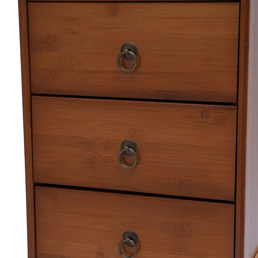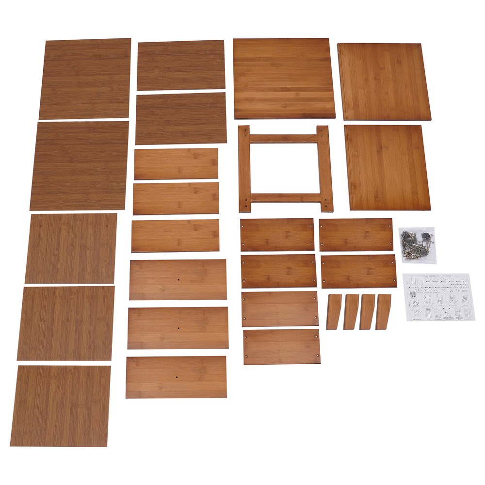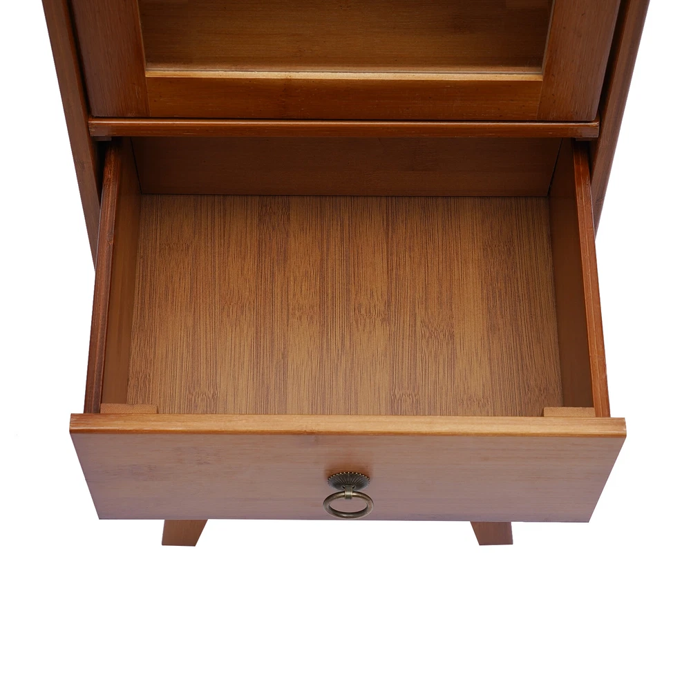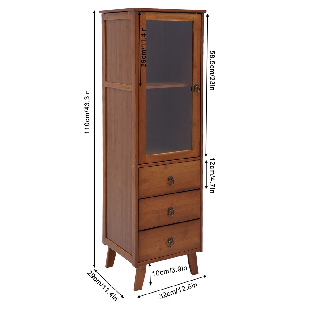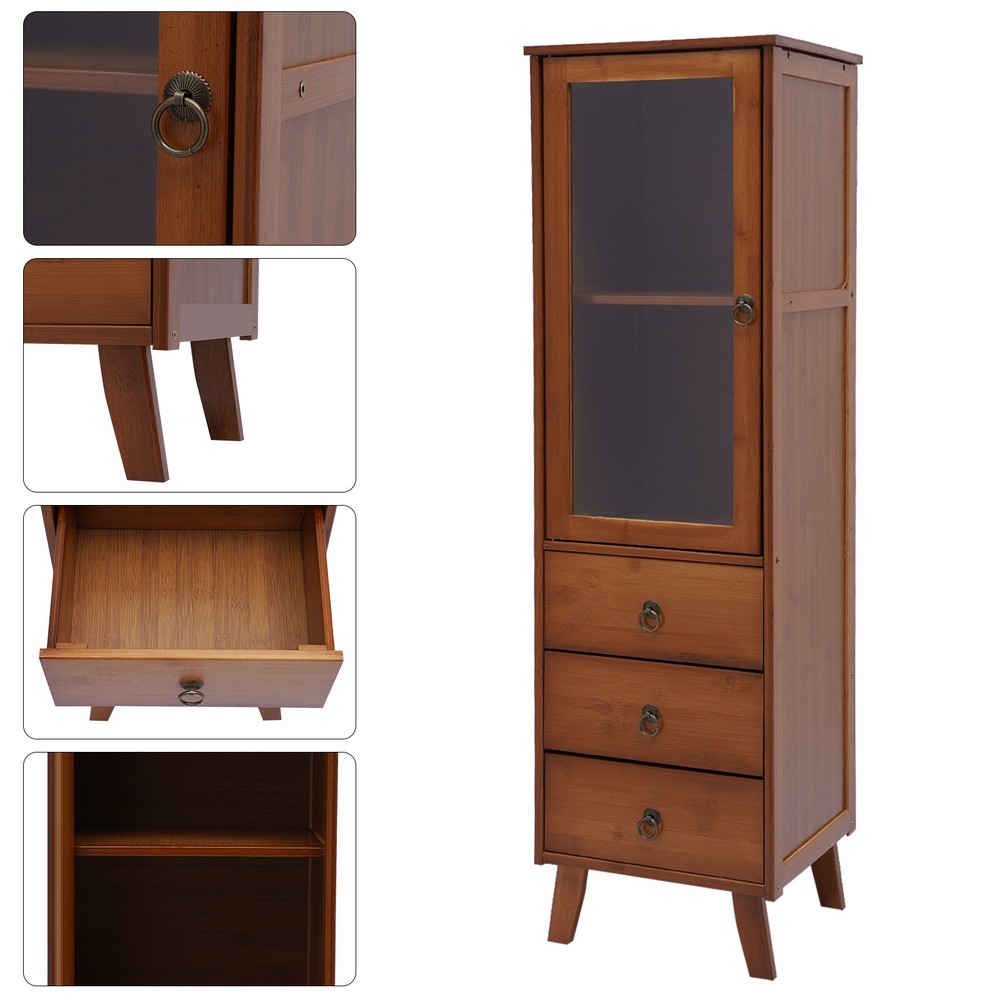 Description The afternoon sunshine, a book and a cup of tea are the meaning of life. With a single cabinet door and three-drawer design, this wood cabinet can organize your items in order and let you experience simple life. It can adapt to any home style, adding elegance to your room. The raised design of the four legs provides strong support for the product while also making it easier to clean. Key Features High-quality Material: The product made of high-quality bamboo, acrylic, and hardware has high wear resistance and strong pressure resistance, thus having a long service life. Multiple Layout: The double-tiered design and the closed space of three drawers can meet your various storage needs and provide you with ample storage space. Bamboo Storage Cabinet with Drawers Freestanding Single-door Cupboard Description The afternoon sunshine, a book and a cup of tea are the meaning of life. With a single cabinet door and three-drawer design, this wood cabinet can organize your items in order and let you experience simple life. It can adapt to any home style, adding elegance to your room. The raised design of the four legs provides strong support for the product while also making it easier to clean. Key Features High-quality Material: The product made of high-quality bamboo, acrylic, and hardware has high wear resistance and strong pressure resistance, thus having a long service life. Multiple Layout: The double-tiered design and the closed space of three drawers can meet your various storage needs and provide you with ample storage space. High Stability: The sturdy structure of the rectangular body and the 4 legs at the bottom provide stability and durability to the product. Each tier can easily withstand 22.05 pounds of cargo under even force. Waterproof Surface: The eco-friendly varnished surface of the product is moisture resistant, making it ideal for storage in bathrooms and kitchens. Classic Appearance: The smooth rectangular cabinet has a classic brown color, making it an attractive choice for any home decoration from traditional to modern. Considerate Design: The design of acrylic doors and drawers can protect your products from light exposure, temperature, dirt and dust so that they can keep clean and tidy. Easy to Clean : The smooth surface and simple product structure make it easy to clean. You just need to wipe it with a wet rag Raised Foot Design: The raised support foot can effectively avoid moisture and make the center of gravity of the product more stable. The height of 3.9 inches can allow the sweeping robot to enter and exit freely so that the bottom space can be cleaned more thoroughly. Easy to Assemble: All necessary hardware and electronic manual in English (If you need it, please contact the customer service staff) can help you complete the installation quickly. Details Exquisite Accessories: The high-quality round design plus metal material add a metallic luster to the product and bring comfortable feel. Well-designed Door: The cabinet door with magnetic suction design is easy to close and can prevent items from falling out. In addition, the clear acrylic door can block dust and make interior items visible at a glance. Application The product can be used in the kitchen, bathroom, bedroom, and living room, and as a sideboard, storage cabinet, etc. Specification Color: Brown Assembly Required: Yes Material: Bamboo, Acrylic, Hardware Process: Spray Paint ( Environmental Varnish ) Mounting Type: Floor Mount Number of Tiers: 5 The Max. Load of Each Tier: About 10kg/22.05lbs (Under Uniform Force) Drawer Height: 12cm/4.7in Leg Height: 10cm/3.9in Cabinet Door Height: 58.5cm/23in Cabinet Door Inner Laminate Height: 29cm/11.4in Product Size: 32*29*110cm/ 12.6*11.4*43.3 in Package Included 1 * Cabinet 1 * Chinese Manual All Accessories for Installation Notes Bamboo products are from natural materials, inevitably there will be different textures, bamboo knots, bamboo halos, bamboo gaps, bamboo spots, and other phenomena, which will not affect the beauty and use. Please do not use corrosive cleaning agents or hard objects to clean, it is recommended to use a soft cloth to wipe. Bamboo products should not be placed in the sun for a long time to avoid cracking and deformation, and should not be placed in a dark and humid place for a long time to avoid mildew. Please keep accessories away from babies, children, and pets during installation. Please allow the slight color difference caused by the shooting light and the 1-3 cm error due to manual measurement, and make sure you do not mind before ordering. Payment Delivery details Terms of sales About us Contact us Payment We accept ebay payment 。 Fees such as import duties, taxes are not included in the item price or shipping costs. These charges are the buyer's responsibility. Delivery details Shipping: 2-9 working days to: USA Terms of sales We maintain high standards of excellence and strive for hundred percent customer satisfaction. Feedback is very important to us. We hope that you contact us immediately before you give neutral or negative feedback, so that we can address your concerns. It is impossible to address issues if we do not know about them! About us Your satis faction is our ultimate goal. We work hard to earn your trust and future business. Our certified technicians have tested each item before shipping. The unit comes with 1 year limited warranty on all manufacturing defects. a) If you receive a defective item, you may return it or ask for a discount. Please contact us within 14 days after you receive the package. b) What you returned must be intact and in its original packaging as re? u. Customer is responsible for shipping costs of the returned item. c) We will cover the cost of shipping back t with the shipping rate indicated in the registration page. We will send you a new unit or refund the full payment you paid. Thank you. Contact us Business Hour Business Hour: Monday To Friday: 8:30 AM to 5:00 PM (Beijing Chin