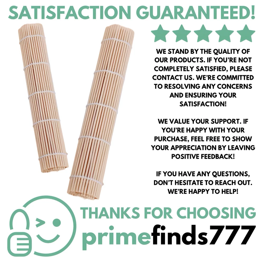 Bamboo Sushi Rolling Mat - DIY Sushi Maker Tool for Beginners & Professionals - Easy to Use, Non-Stick, Ideal for Making Maki & Gimbap Transform your sushi-making experience with the Primefinds777 Bamboo Sushi Rolling Mat. Whether you’re a beginner just starting your sushi journey or a seasoned chef looking to refine your craft, this sushi mat is perfect for creating delicious sushi rolls, gimbap, and more. Crafted from durable, fresh bamboo, this mat is both tough and lightweight, designed to give you the perfect roll every time. Its rigid yet flexible design ensures that your sushi rolls come out neatly and evenly, while its non-stick surface ensures no mess – even without nori seaweed. This sushi rolling mat is ideal for anyone looking to make restaurant-quality sushi at home, including home cooks, culinary students, and professional chefs. It’s an essential tool for anyone looking to roll sushi or gimbap with ease! Key Features: • Premium Bamboo Construction: Made from fresh, durable bamboo that is both light and strong. • Non-Stick Surface: Enjoy effortless rolling without worrying about ingredients sticking. • Perfect for Beginners & Pros: Great for anyone looking to create flawless sushi rolls or gimbap. • Easy to Clean: Simply wash by hand after use to maintain its condition. • Compact & Portable: Measures 24 x 24 cm, making it easy to store and use anywhere. Specifications: • Material: Bamboo • Weight: 50g • Size: 24 x 24 cm • Package Includes: 1x Bamboo Sushi Rolling Mat Important Notes: • Dimensions: Due to manual measurement, there may be a slight size difference. • Color Variations: Due to lighting, screen settings, and viewing conditions, colors may vary slightly from the images. • Customer Satisfaction: If you experience any issues with your order, please contact us before opening a return case or leaving feedback. We are committed to resolving any concerns and ensuring your satisfaction! Get ready to take your sushi making to the next level with the easy-to-use Primefinds777 bamboo sushi rolling mat— available exclusively on eBay. Whether you’re rolling sushi for a family meal or impressing your friends with your culinary skills, this tool is a must-have in your kitchen! Buy Now and Start Creating Delicious Sushi Rolls Today!