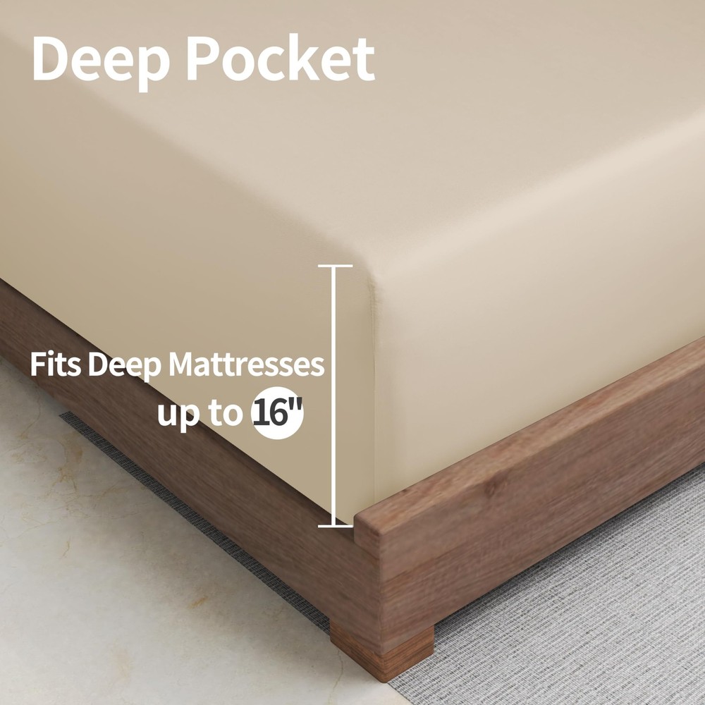 Ink Into Silky Soft Luxury: Our bottom fitted sheet is 100% viscose made from bamboo with high 400 Thread Count, not blended with synthetic polyester fibers. The unique twill weave makes it stronger and cooler than cotton and smooth like silk, keeping you comfortable all night long Cool & Breathable: Maintaining a cool body temperature is imperative for a good night's sleep. Experience the comfort and cooling with our fitted sheet only. Our 100% Viscose Derived from Bamboo fitted sheet are moisture-wicking, breathable, and thermoregulating. Great help for people with night sweats 16" Deep Pocket & Easy Fit: Other fitted sheets often pull loose from the mattress while you're sleeping even when you buy the right size. Our extra deep pocket fitted sheet is designed to fit mattresses up to 16" inches, the elastic band around the edge ensures a secure fit that won't shift while you sleep – no more balled up sheets! Easy to Care: This bed fitted sheet are OEKO-TEX Standard 100 certified for high safety standards. Unlike other cheap sheets that are so thin, our machine-washable fitted sheets deep pocket - no pilling, no shrink, no fade. Simply wash them in cold water on a gentle cycle, do not use bleach and fabric softener Package Include: 1 pc 100% Viscose Derived from Bamboo fitted sheet California King (72" x84"). No pillowcase