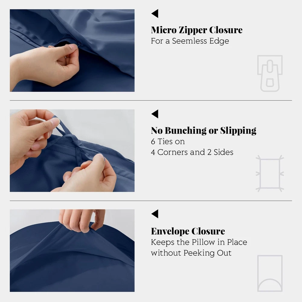 Bamboo Viscose Full Queen Duvet Cover Set 3-Piece with Zipper Closure