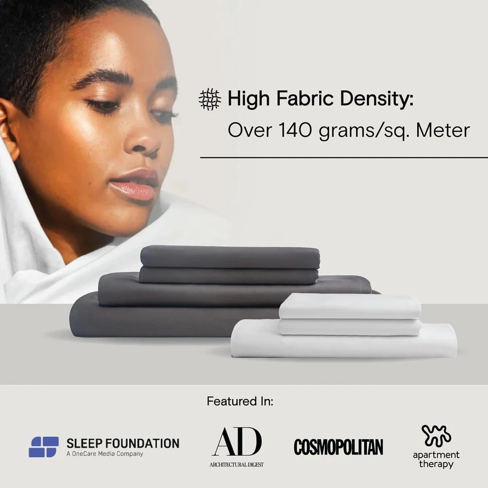 These sheets are a dream! Super soft, breathable, and stay cool all night—perfect for hot sleepers. The deep pockets fit my thick mattress snugly, and the storm gray color looks elegant. Love that they’re eco-friendly and stain-resistant too. Worth every penny!