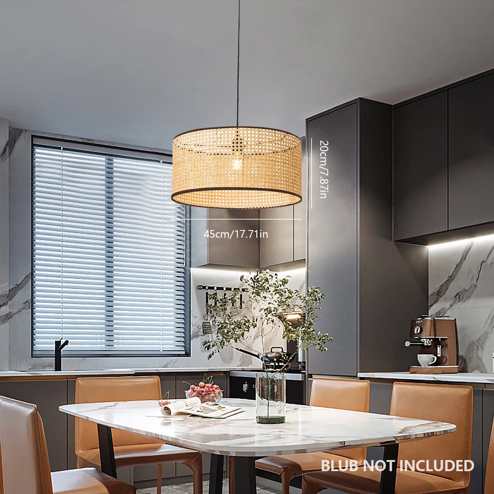 Bamboo Wicker Rattan Shade Pendant Light Ceiling Fixture Chandelier Lamp Vintage Vintage Bamboo Rattan Chandelier Pendant Light Cafe Teahouse Bedroom Hanging Lamp Fixture Round Φ45cm*20cm (height) Description: 1) Excellent Design: The retro pendant lamp is designed with Rattan Cylinder Shade , creates a wonderfully new look , and inspire you to create the room of your dreams. 2) Natural Material: Natural rattan selected , Handmade Weaving , fine workmanship. Fade resistant , safe , environmentally friendly and healthy. 3) Easy to Install: Installation process is simple , Includes All Mounting Hardware Accessories , if you have any problems please feel freely to contact us. 4) Cord Adjustable: The length of Hanging Cable Is Adjustable , easy to install , led light source is more energy-saving (bulb not included). 5) Widely Application: The pendant light combine Vintage and Simple Style , perfect decor for living rooms , restaurants , kitchens , dining rooms , hallways , cafes , basements , corridor , stairwells , bars , clubs , libraries , office , entrance , bedrooms , reading rooms and more Specification: - Voltage: 110V - Max Power: 40W - Material: Rattan - Light Source: 1x E26 - Size: Diameter: 45cm/17.7inch Height: 20 c m/7.8inch - Cable Length: 140cm/55.12inch (Adjustable) - Weight: about 1kg - Recommended Area: 50-102 Sq.ft. Package Includes: 1 Piece Pendant Lamp (Without Bulb) Payment Delivery details Terms of sales About us Contact us Payment We accept ebay payment 。 Fees such as import duties, taxes are not included in the item price or shipping costs. These charges are the buyer's responsibility. Delivery details Shipping: 2-9 working days to: USA Terms of sales We maintain high standards of excellence and strive for hundred percent customer satisfaction. Feedback is very important to us. We hope that you contact us immediately before you give neutral or negative feedback, so that we can address your concerns. It is impossible to address issues if we do not know about them! About us Your satis faction is our ultimate goal. We work hard to earn your trust and future business. Our certified technicians have tested each item before shipping. The unit comes with 1 year limited warranty on all manufacturing defects. a) If you receive a defective item, you may return it or ask for a discount. Please contact us within 14 days after you receive the package. b) What you returned must be intact and in its original packaging as re? u. Customer is responsible for shipping costs of the returned item. c) We will cover the cost of shipping back t with the shipping rate indicated in the registration page. We will send you a new unit or refund the full payment you paid. Thank you. Contact us Business Hour Business Hour: Monday To Friday: 8:30 AM to 5:00 PM (Beijing China time) Due to time zones, our reply to your questions may not be immediately. But within above working time, we will reply your email within 24 hours. If it's non-workdays, please kindly be patient and wait till Monday. Please contact us with ebay message. Please feel free to contact us if you have any questions. Monday To Friday: 8:30 AM to 5:00 PM (Beijing China time) Due to time zones, our reply to your questions may not be immediately. But within above working time, we will reply your email within 24 hours. If it's non-workdays, please kindly be patient and wait till Monday. Please contact us with ebay message. Please feel free to contact us if you have any questions. Type Chandelier Brand Unbranded Lighting Technology LED Sensor Type Does not apply Style Modern Room Bedroom, Dining Room, Living Room, Attic, Hallway, Home Office/Study, Porch Light Color Warm White LED String/Strip Type Does not apply Shade Shape Drum Material Rattan Color White Number of Lights 1 Number of Settings Does not apply Finish Does not apply Features Height-Adjustable Power Source Hardwired Voltage 110 V Power Consumption 40 W Cord Color Black Control Style Switch Installation Area Indoor Manufacturer Does not apply Department Teens, Adults, Kids MPN Does not apply Item Diameter 45 cm/ 17.7 inch Item Height 20 cm/ 7.8 inch Energy Star 3 Stars EC Range A++ - G Assembly Required Yes